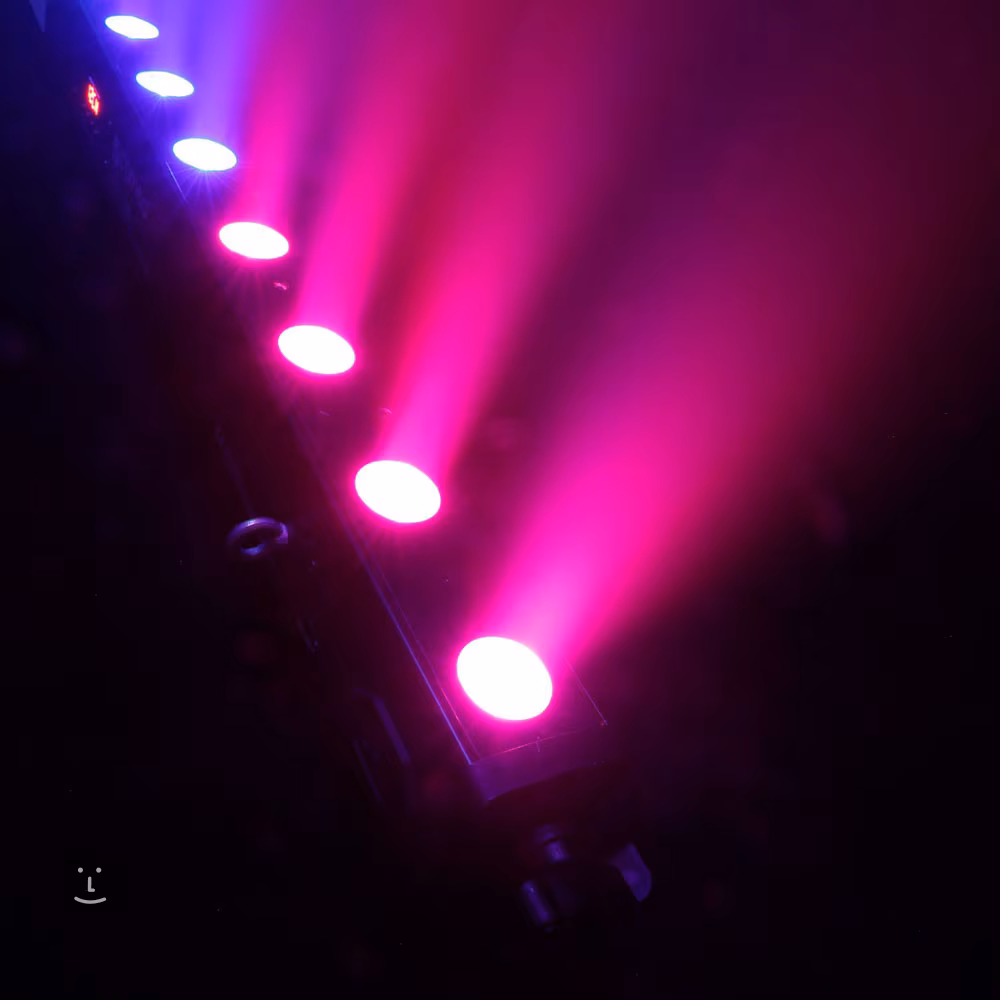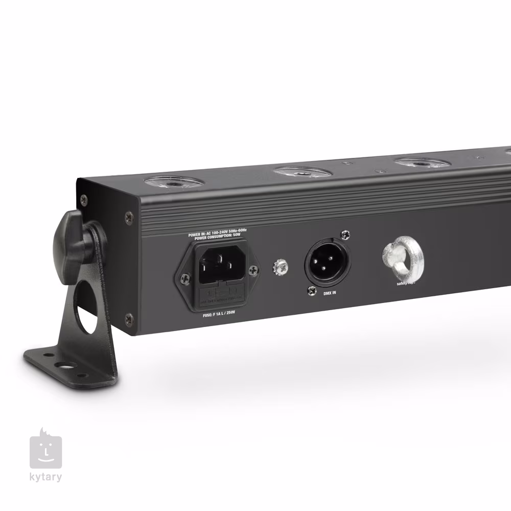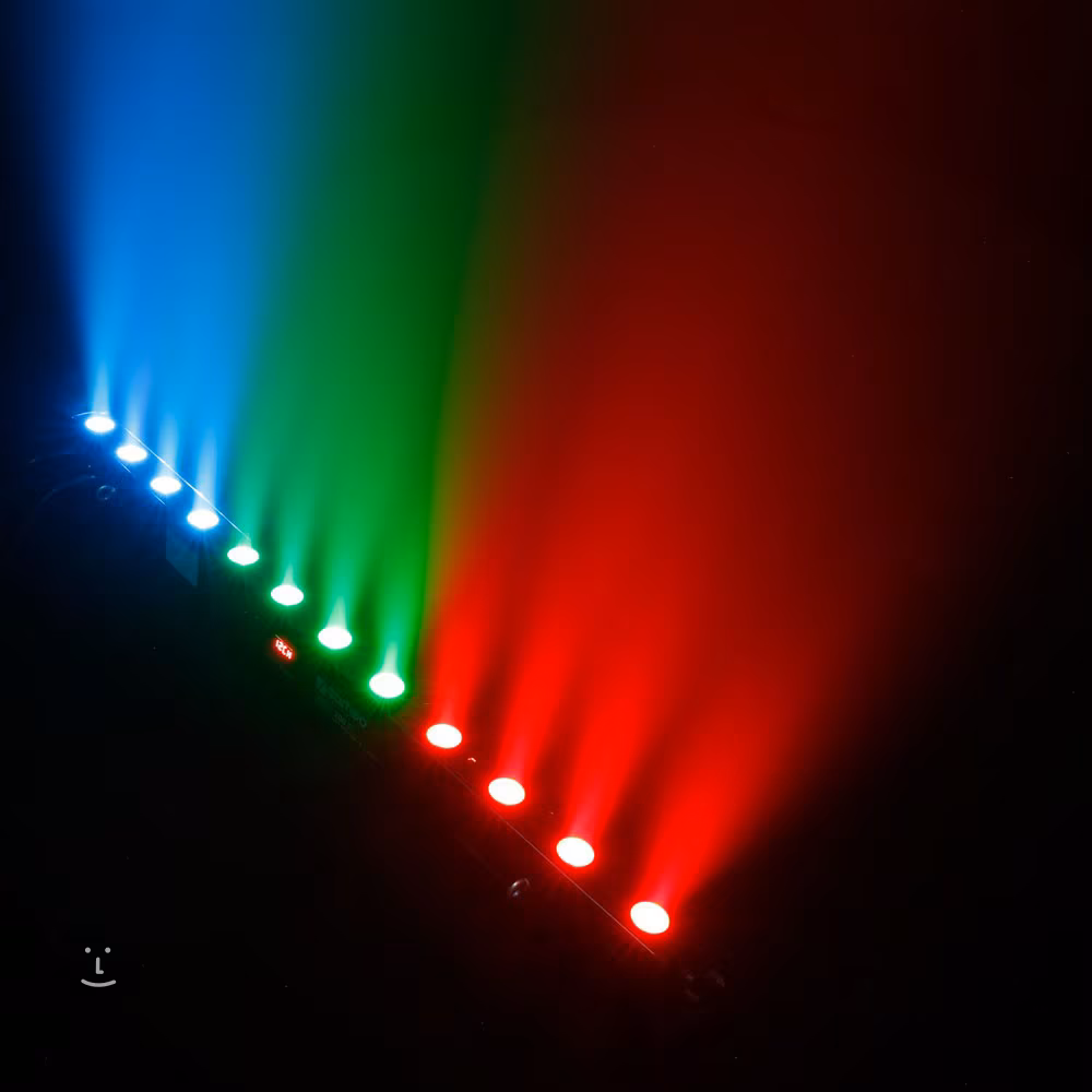 K ovládání můžete využít standardní protokol DMX512, dvanáct automatických programů nebo zvukem ovládané programy. K dispozici je také režim Master/Slave a barevná makra. K manuálnímu nastavení poslouží přehledný ovládací panel s displejem a tlačítky. Součástí balení je infračervený ovladač pro dálkové ovládání. Přístroj je osazen 3pinovými DMX konektory a univerzálními napájecími konektory IEC. Veškerá elektronika je zasazena do bytelného kovového šasi. Dva otočné montážní držáky poslouží k připevnění ke zdi, pódiové konstrukci nebo jako stojánek na zem či pevnou podložku.