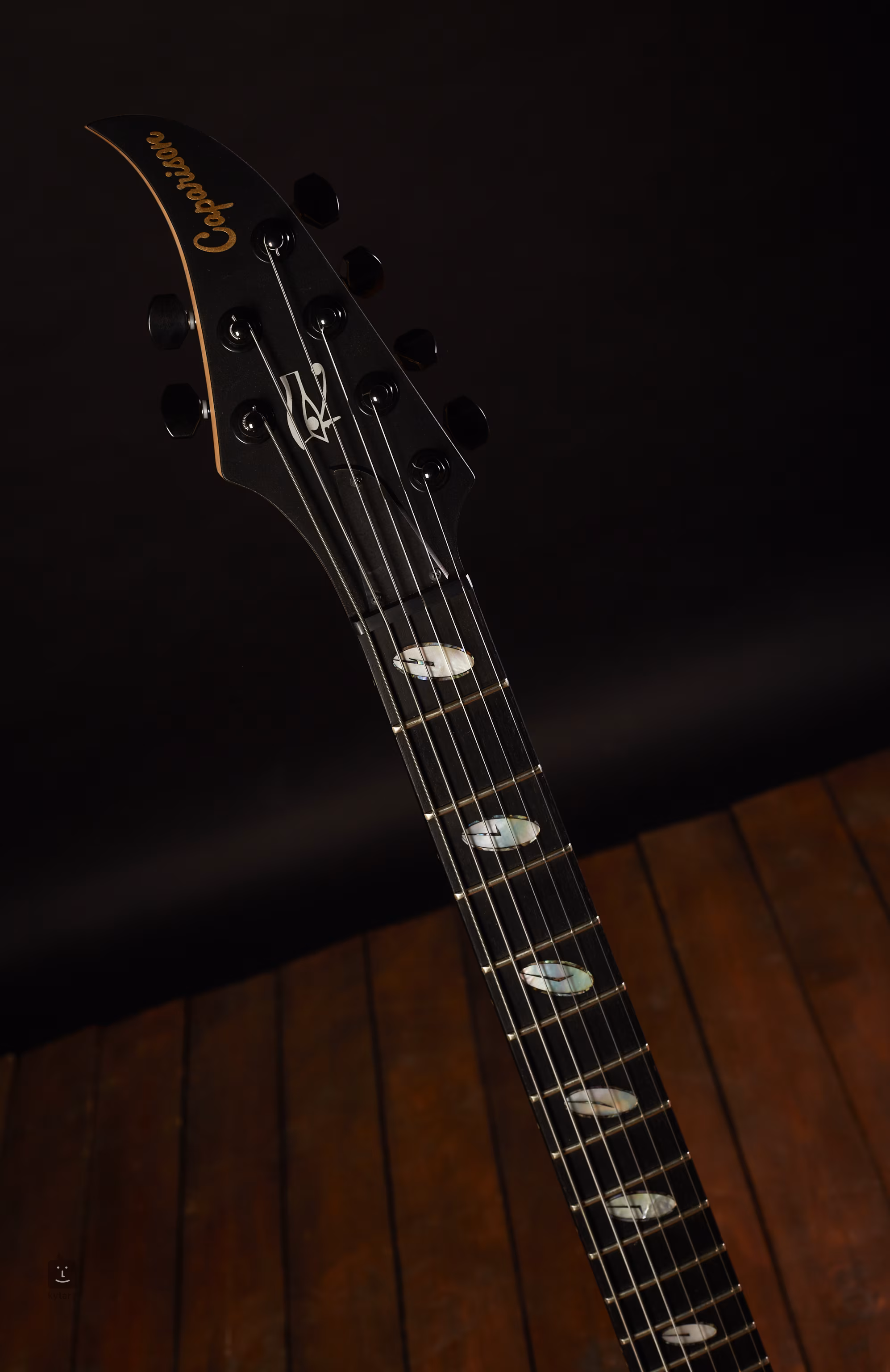 Rockové subtilní monstrum s 27 pražci na ebenovém hmatníku zdobeném stylizovanými hodinovými ciferníky. Tělo tohoto nástroje je tvořené netradiční kombinací javoru a bahenního jasanu (vrchní vrstva), krk je pětivrstvý pro co největsí stabilitu.