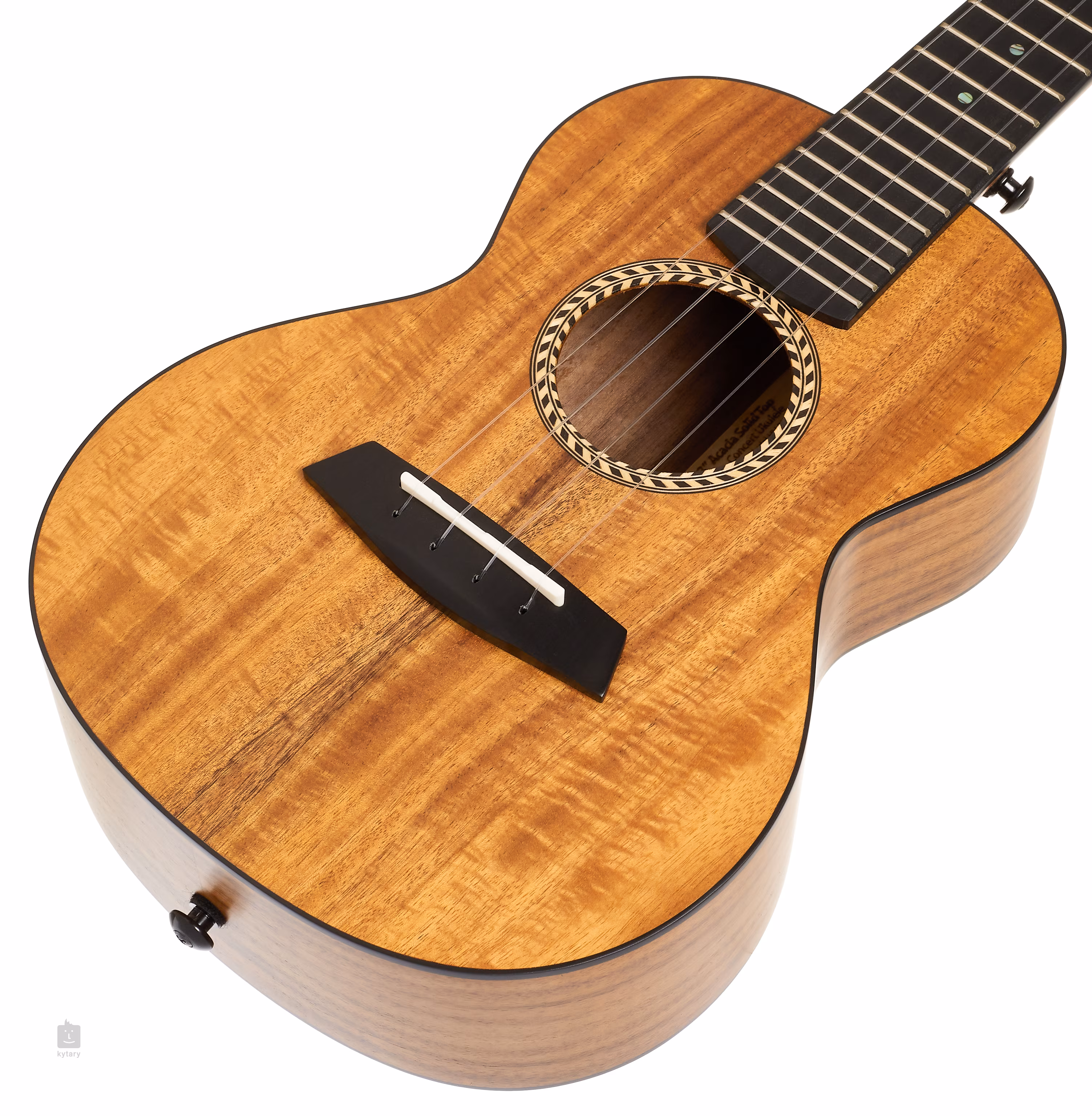 Přední deska akustického ukulele Concert Ukulele Acacia Solid Top značky Cascha je zhotovena z masivu akácie, která nástroji poskytuje kromě pěkného vzhledu i vřelý „ostrovní“ zvuk tradičních ukulele. Z akácie (laminované) je zhotovena i zadní deska a luby. K mahagonovému krku je přilepen hmatník z moderního kompozitního materiálu osazený osmnácti pražci a pozičními tečkami. Struny jsou uchyceny v ladicích mechanikách kytarového typu a kobylce z kompozitu. Pěkné zpracování podtrhuje povrchová úprava s otevřenými póry, oboustranná lemovka a zdobná rozeta.