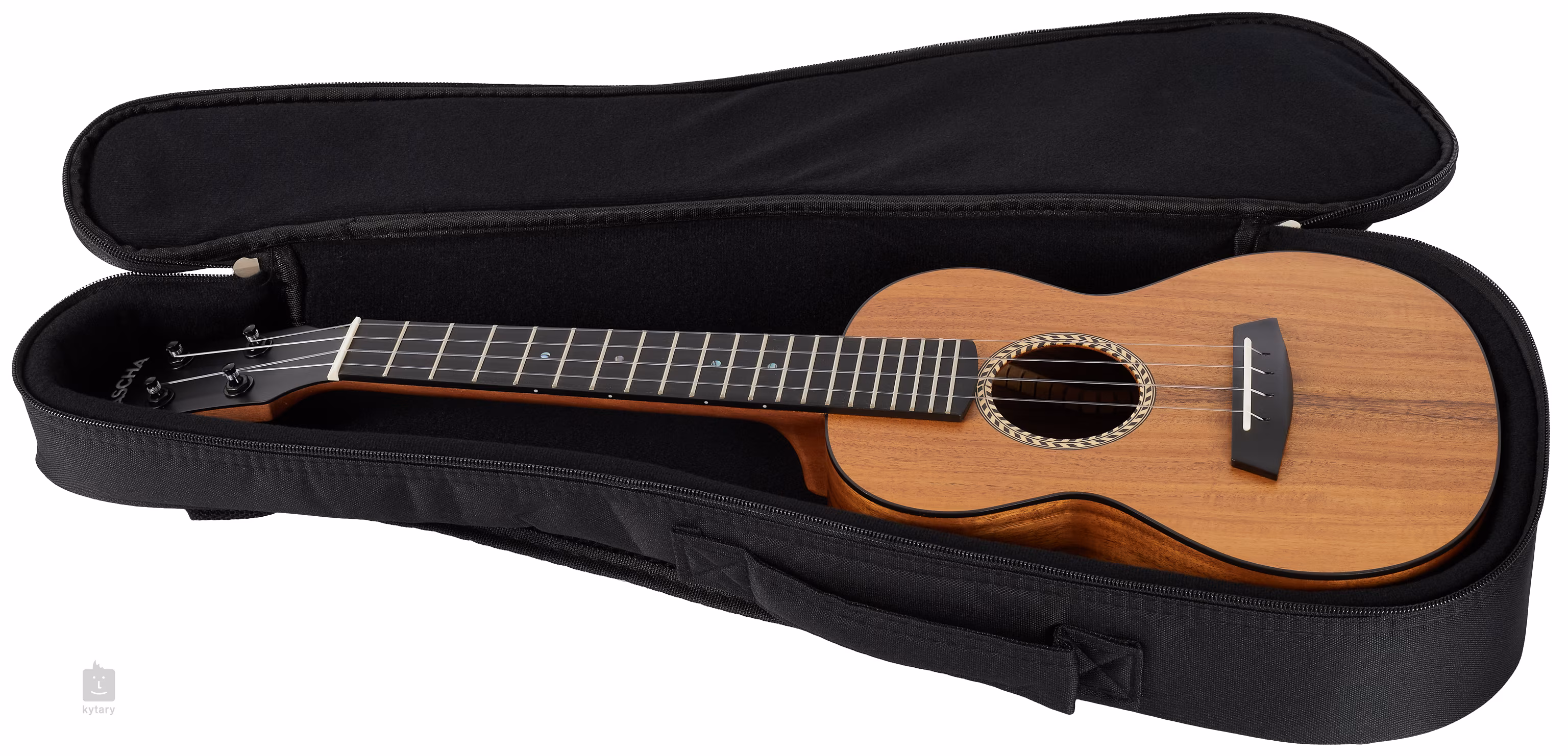 Ukulele je dodáváno v polstrovaném obalu (tloušťka polstrování 15 mm) spolu se třemi trsátky.