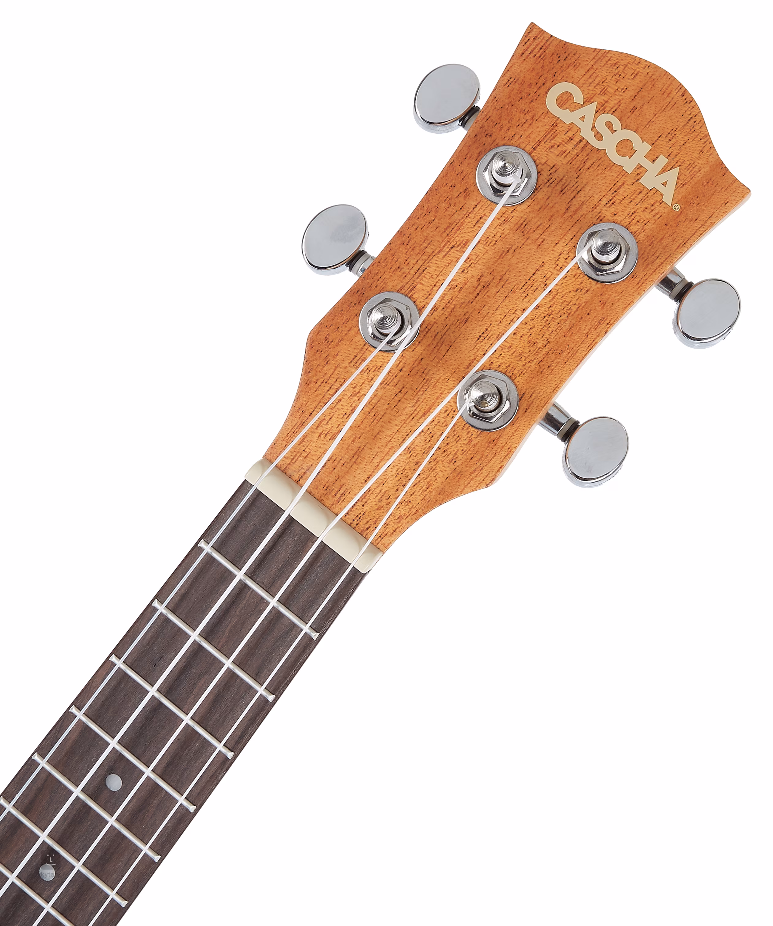 Sopránové ukulele Cascha s označením Premium je cenově dostupný nástroj, který potěší děti i dospělé. V rámci tohoto starter packu spolu s ukulele získáte praktický polstrovaný obal (tloušťka polstrování 5 mm), tři trsátka, školu hry na ukulele v anglickém jazyce s doprovodným DVD a klipovou ladičku (k napájení ladičky je zapotřebí lithiová baterie CR2032).