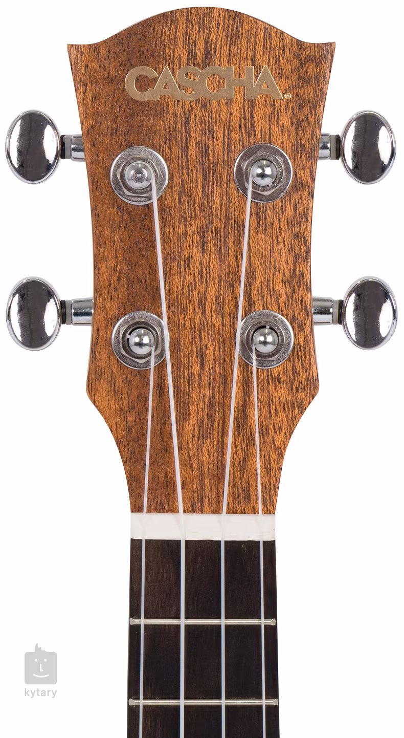 Přední deska tenorového ukulele pro leváky Cascha HH 2154L Tenor Spruce LH z řady Solid Top Series je zhotovena z masivu smrku, zadní deska a luby jsou vyrobeny z laminovaného mahagonu. Struny jsou uchyceny v chromovaných mechanikách kytarového typu a kobylce z palisandru, ze kterého je zhotoven i hmatník ukulele. Pěkné zpracování podtrhuje rozeta a výložka se vzorem rybí kosti a černá oboustranná obvodová lemovka těla.