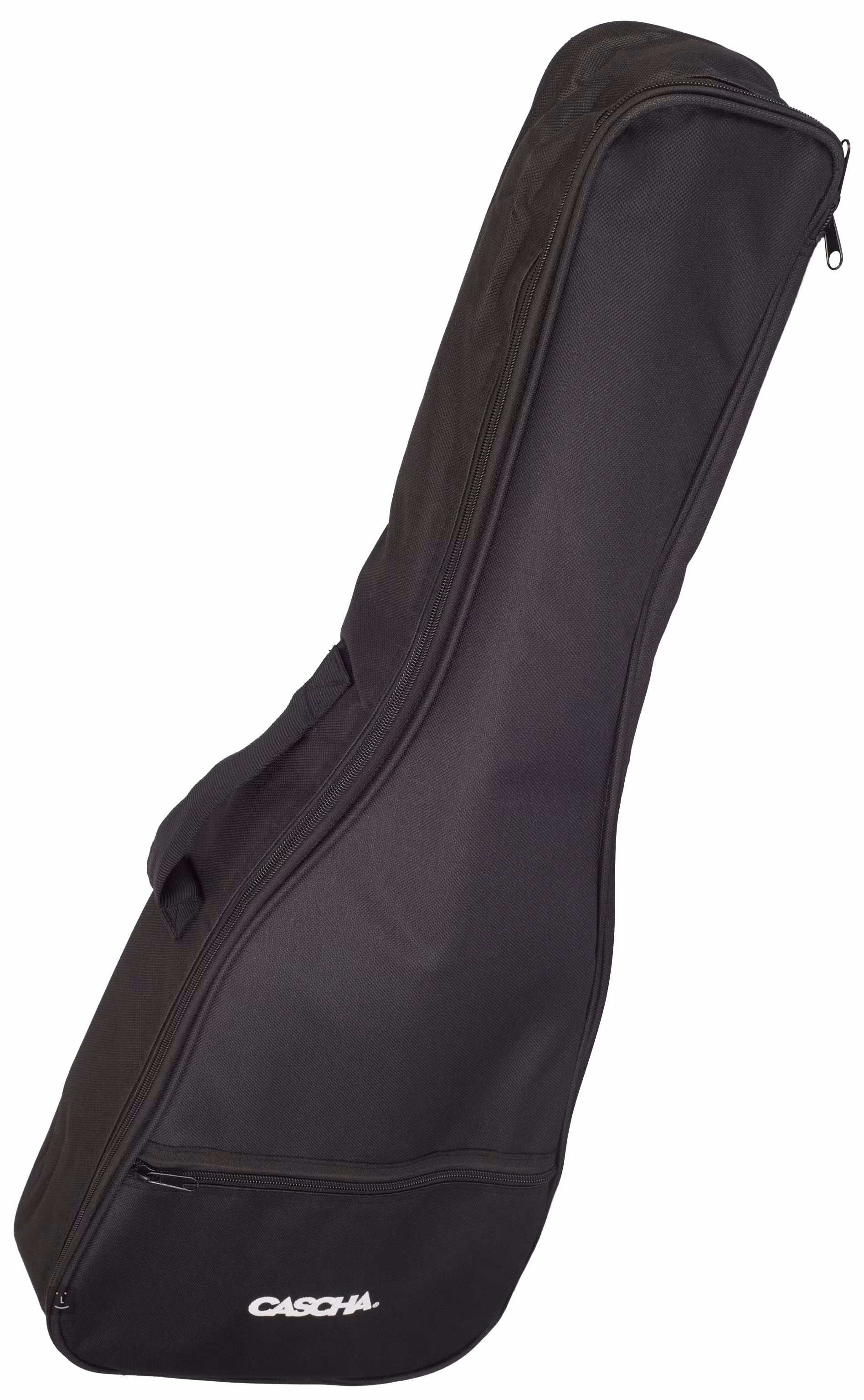 Tělo tohoto basového ukulele značky Cascha je zhotoveno z laminovaného mahagonu. Ke krku z okoumé je přilepen hmatník z blackwoodu osazený šestnácti pražci. Tlusté polyuretanové struny (v případě basových ukulele se nepoužívají nylonky) jsou ukotveny v ladících mechanikách kytarového typu a plastové kobylce. Pěkné zpracování podtrhuje rozeta se vzorem rybí kosti a černá oboustranná obvodová lemovka těla.