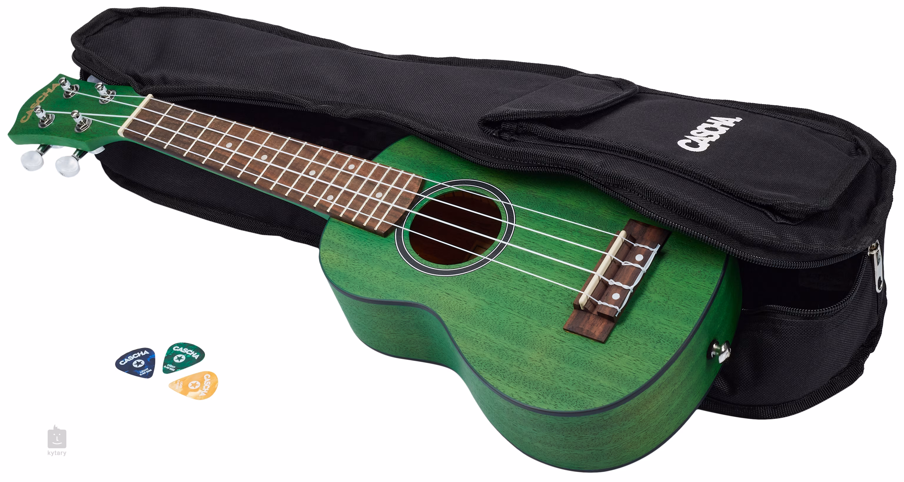 Sopránové ukulele Cascha s označením Premium je cenově dostupný nástroj, který potěší děti i dospělé. Spolu s ukulele získáte i praktický polstrovaný obal (tloušťka polstrování 5 mm) a tři trsátka, takže můžete okamžitě vyrazit za zábavou k vodě, do skal, k moři… všude, kde to žije.