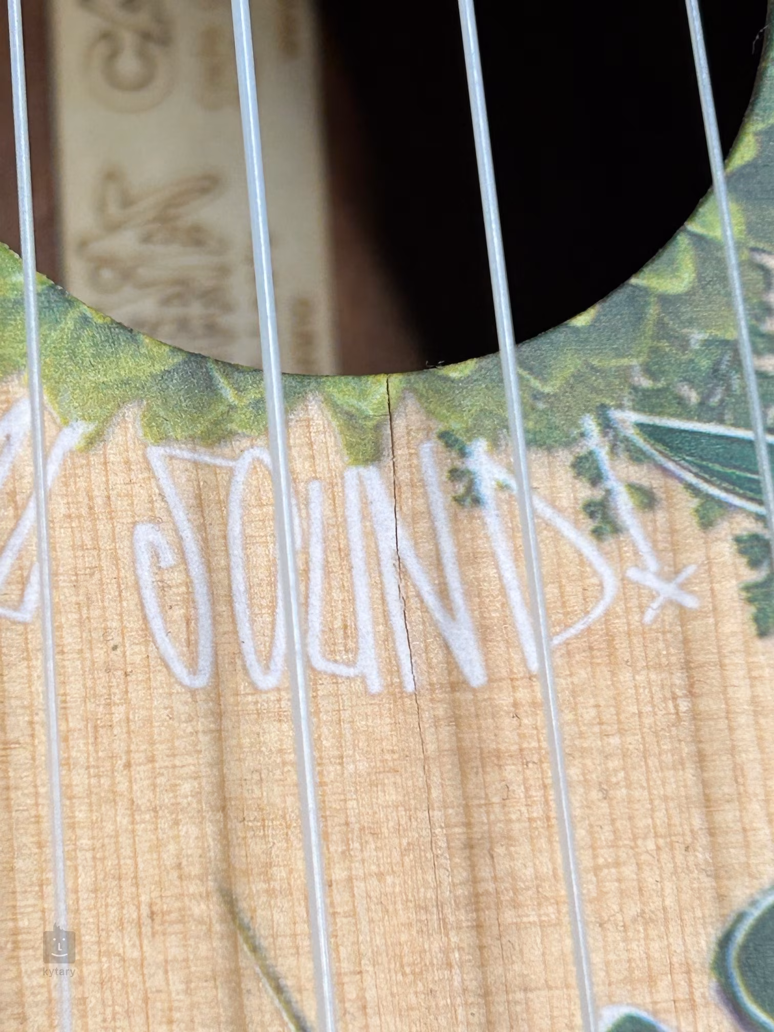 Ukulele je dodáváno v polstrovaném obalu (tloušťka polstrování 5 mm) spolu se třemi trsátky.