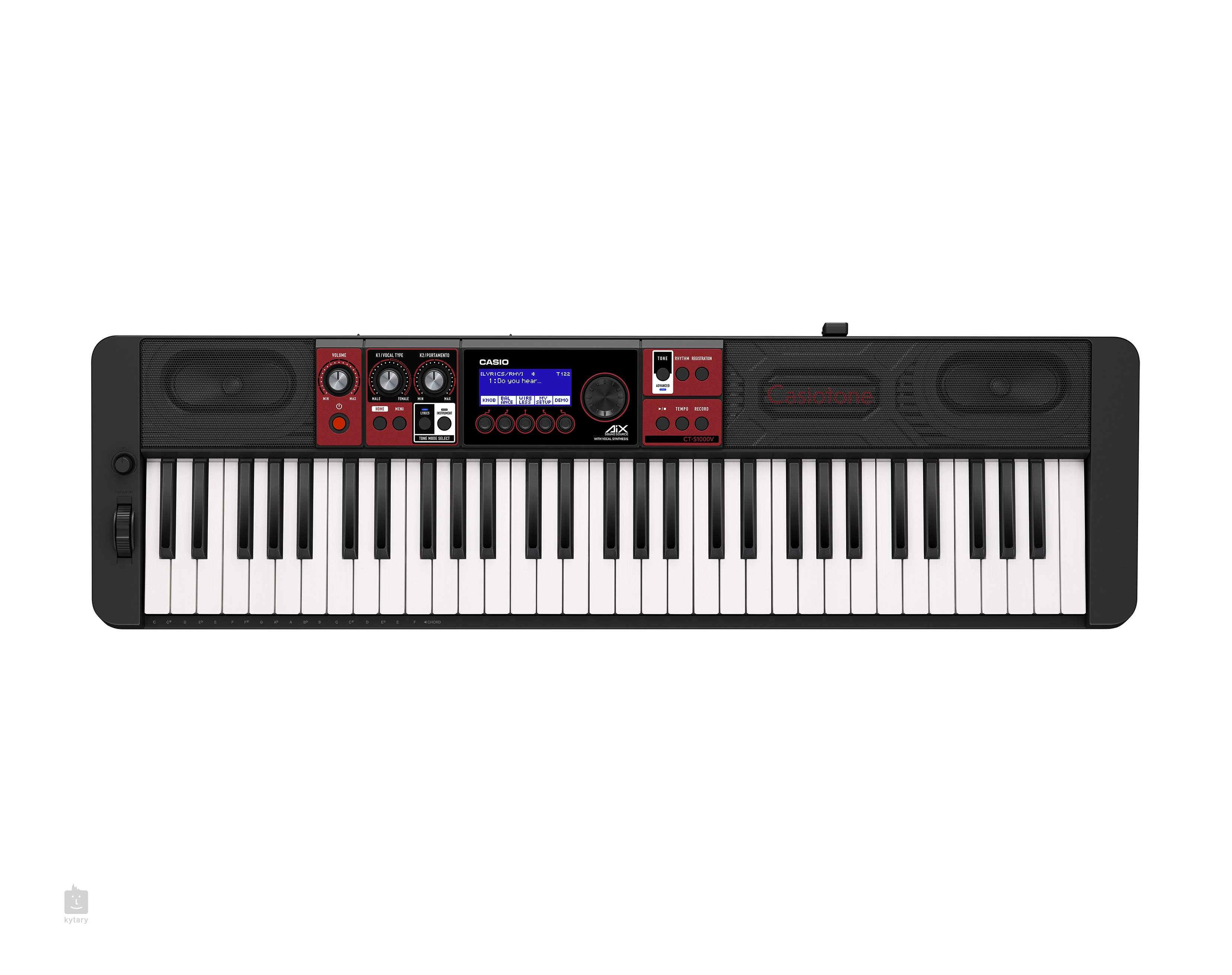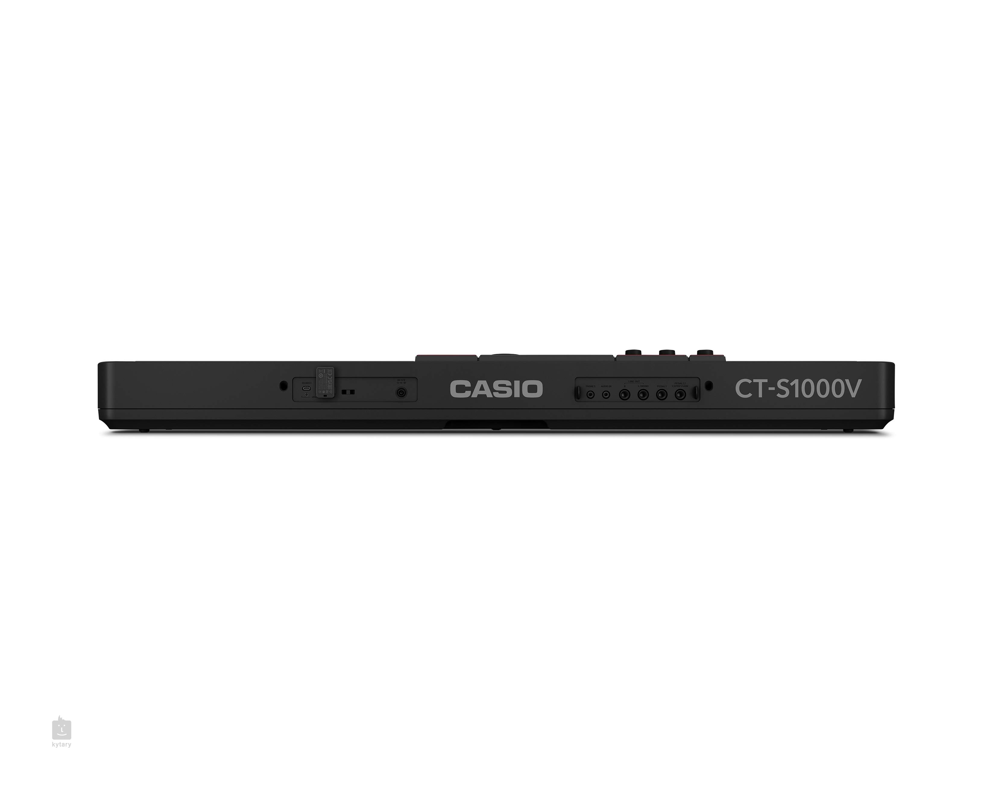 Casio CT-S1000V disponuje 61 standardními klávesami se třemi úrovněmi citlivosti, zvukový signál můžete obohatit 24 Reverb, 12 Chorus, 15 Delay, 800 zvukovými rejstříky, nebo využít automatického doprovodu, kdy máte na výběr 243 rytmů. Tyto klávesy jsou jako jediné z řady Casiotone plně kompatibilní s bezplatnou aplikací Lyric creator, kde můžete vytvářet svoje vokální syntézy přímo s vašimi texty. Klávesy dále nabízí integrovaný metronom, tlačítko transpozice/ladění, šestistopý samplér a konektory pro MIDI příjem. O zvuk se postarají dva 2,5W reproduktory a pokud patříte mezi noční hráče, určitě využijete i sluchátkový výstup na zadní straně. Zadní panel dále nabízí Aux vstup pro hudební přehrávač, linkový výstup a vstup pro sustain pedál. CT-S1000V je plně kompatibilní s aplikací Casio Music Space, kterou si zdarma stáhnete na Google Play nebo v Appstoru. Součástí balení je také Bluetooth adaptér WU-BT10 pro bezdrátovou komunikaci (Audio/Midi) mezi nástrojem a počítačem, nebo přenosným reproduktorem.