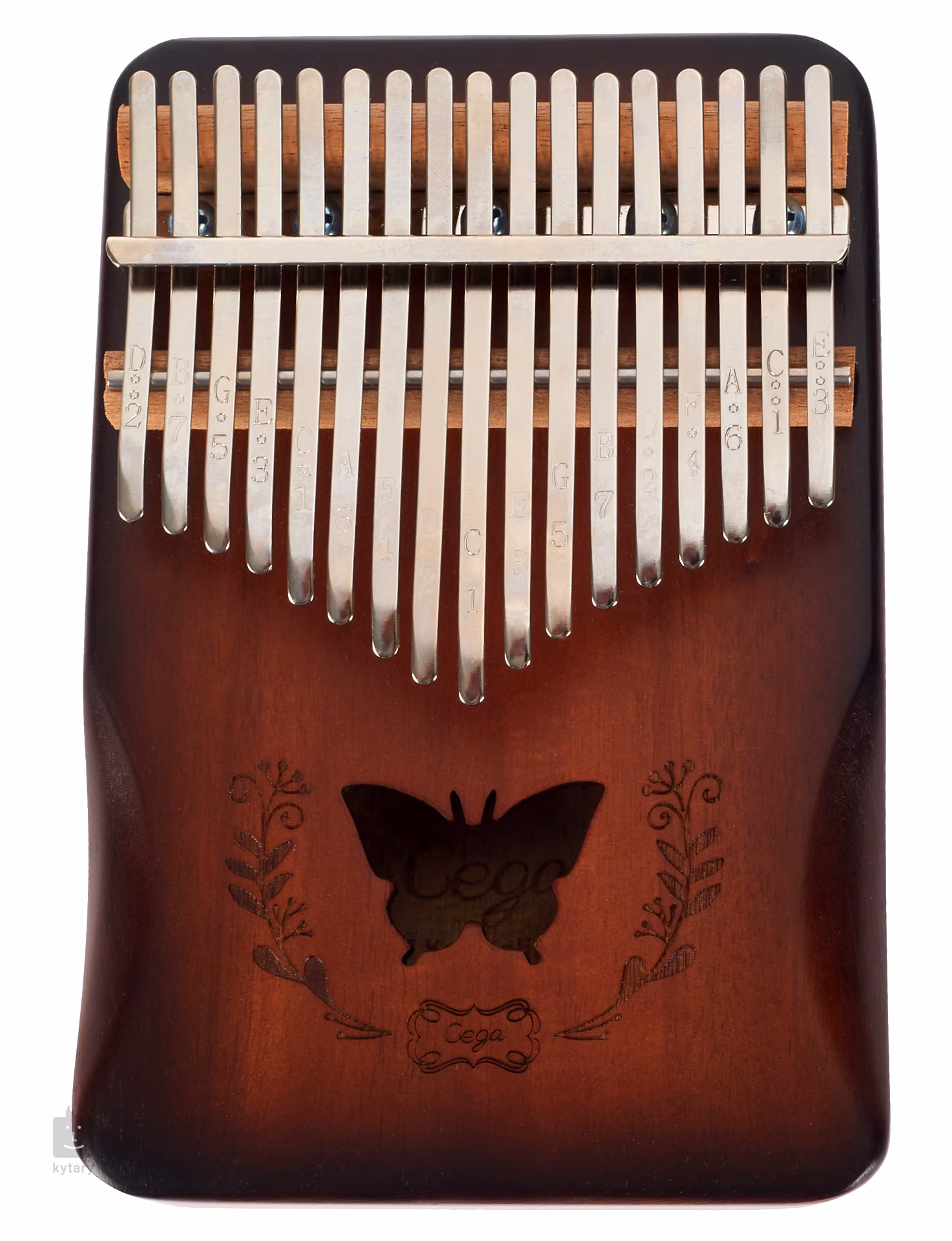 Kalimba je unikátní melodický nástroj, který přidá do vaší tvorby nebo live performance unikátní a nezaměnitelný prvek. Může sloužit k doprovodné nebo sólové hře. Kalimby od firmy Cega jsou vyráběny z kvalitních dřevin, sušených pouze přirozenou cestou, což jim poskytuje skvělé zvukové vlastnosti a maximální stabilitu. Tento model je vyroben z ověřeného mahagonového dřeva a vybaven ozvučnicovou dírou, která zvuku nástroje přidá na síle a hutnosti. Klávesy z karbonové oceli pak nástroji poskytují čitelný a hlasitý, avšak stále příjemně vřelý zvuk. Na klávesách najdete také vyryté tóny, což pomůže v orientaci zejména začínajícím hráčům.