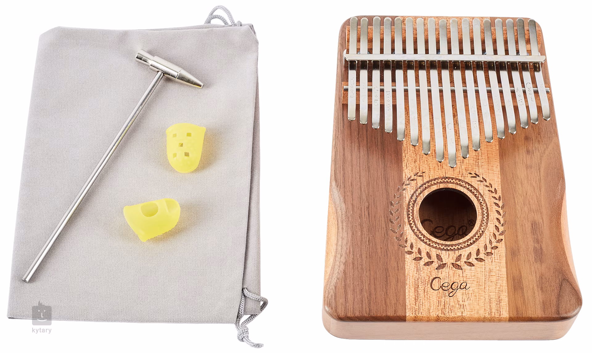 Kalimba je unikátní melodický nástroj, který přidá do vaší tvorby nebo live performance unikátní a nezaměnitelný prvek. Může sloužit k doprovodné nebo sólové hře. Kalimby od firmy Cega jsou vyráběny z kvalitních dřevin, sušených pouze přirozenou cestou, což jim poskytuje skvělé zvukové vlastnosti a maximální stabilitu. Klávesy z karbonové oceli pak nástroji poskytují čitelný a hlasitý, avšak stále příjemně vřelý zvuk. Na klávesách najdete také vyryté tóny, což pomůže v orientaci zejména začínajícím hráčům.