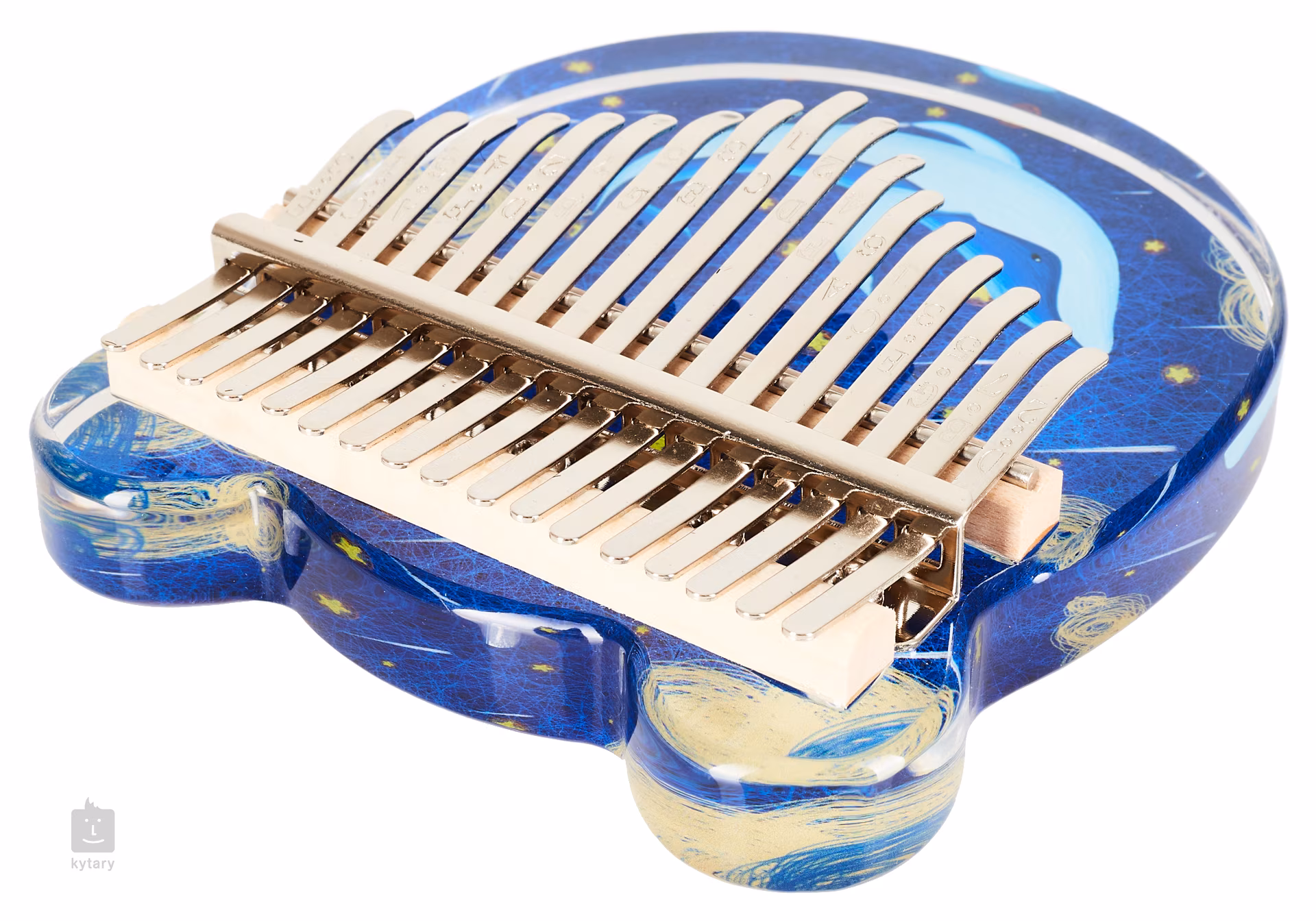 Kalimba je unikátní melodický nástroj, který přidá do vaší tvorby nebo live performance unikátní a nezaměnitelný prvek. Může sloužit k doprovodné nebo sólové hře. Tento model je netradičně vyroben z průhledného akrylu, který je velice odolný a poskytuje skvělé zvukové vlastnosti. Klávesy z karbonové oceli pak nástroji poskytují čitelný a hlasitý, avšak stále příjemně vřelý zvuk. Na klávesách najdete také vyryté tóny, což pomůže v orientaci zejména začínajícím hráčům.