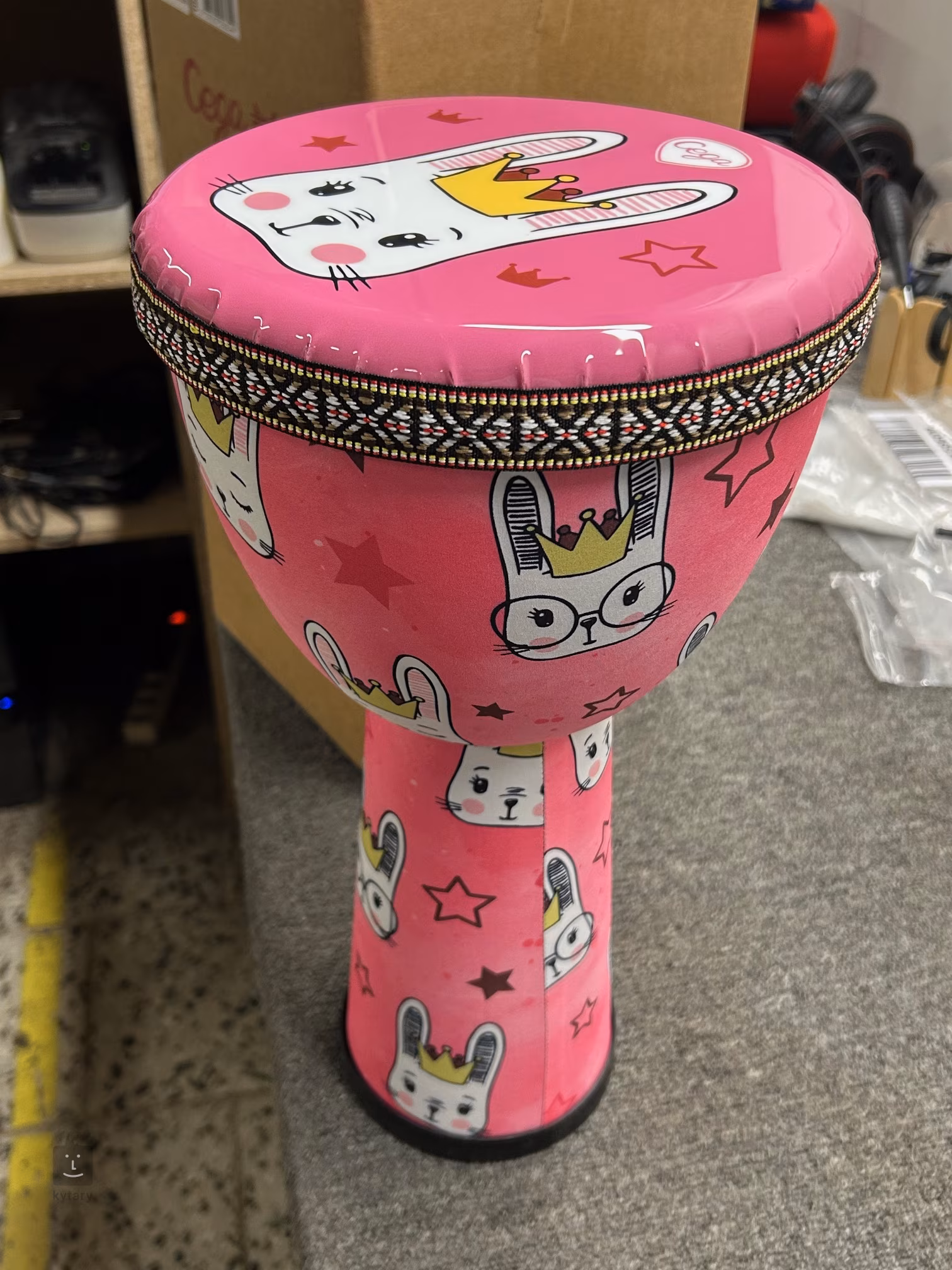 Toto djembe je vhodné zejména pro děti či začínající hráče. Je vyrobeno z bytelného ABS plastu, který ve spojení se syntetickou blánou poskytuje nejen skvělé zvukové vlastnosti, ale také maximální odolnost vůči mechanickému poškození a povětrnostním podmínkám. Nemusíte se tak obávat o jeho poškození či rozladění ani při cestování nebo hraní venku. Součástí balení je také přepravní obal, který lze díky ramenním popruhům nosit jako batoh, popruh pro možnost pohodlného hraní ve stoje.