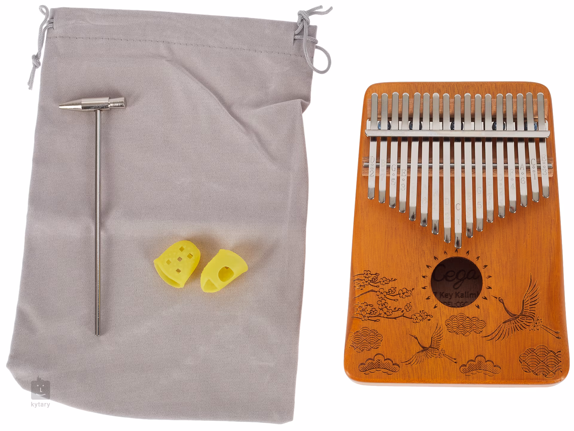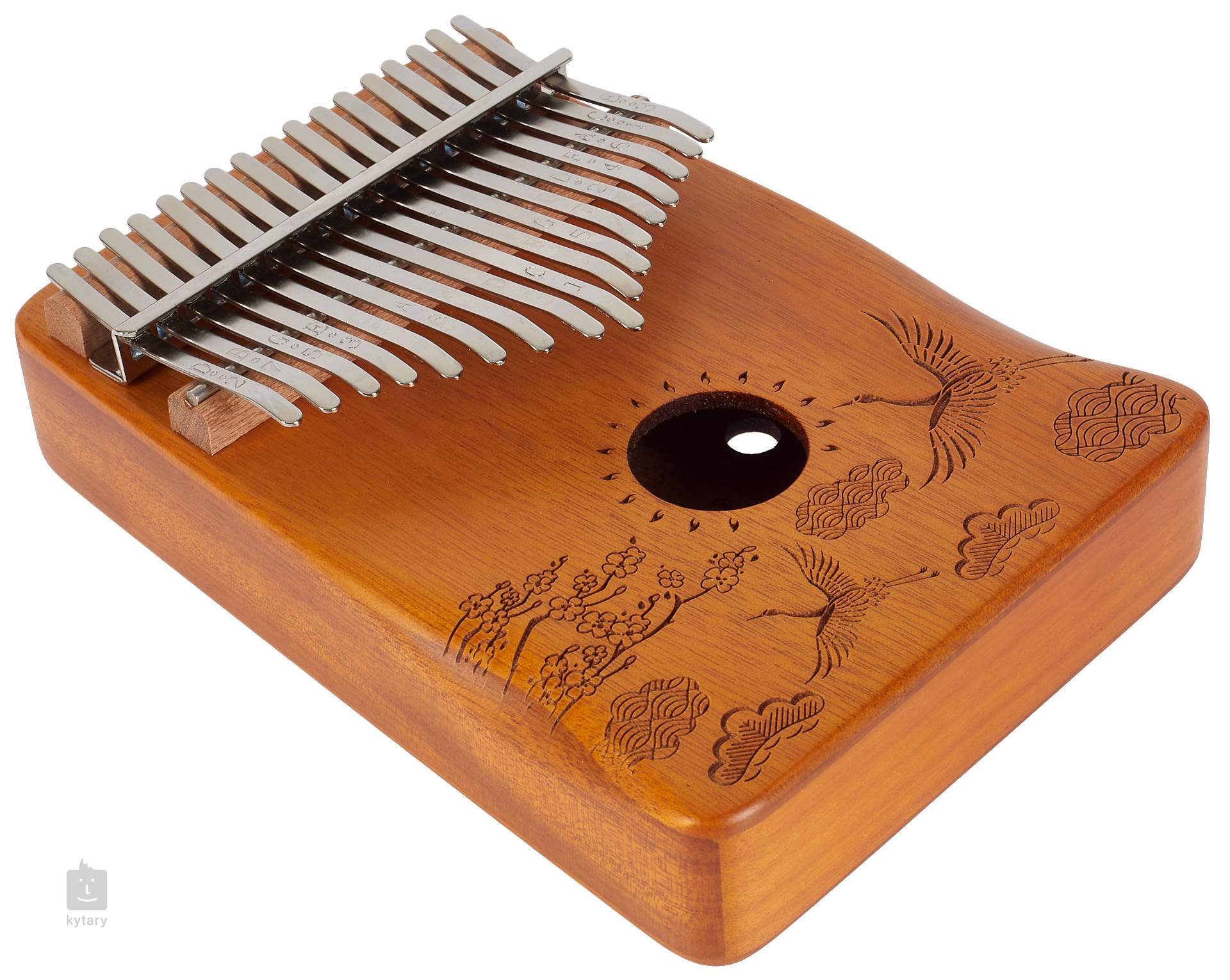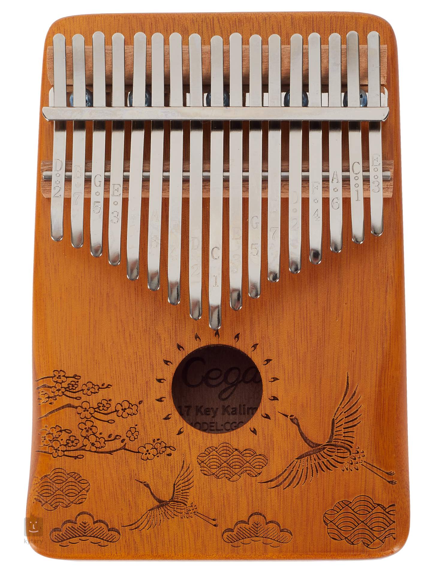 Kalimba je unikátní melodický nástroj, který přidá do vaší tvorby nebo live performance unikátní a nezaměnitelný prvek. Může sloužit k doprovodné nebo sólové hře. Kalimby od firmy Cega jsou vyráběny z kvalitních dřevin, sušených pouze přirozenou cestou, což jim poskytuje skvělé zvukové vlastnosti a maximální stabilitu. Tento model je z javorového dřeva a zdobí ho laserově vypalovaný vzor. Klávesy z karbonové oceli pak nástroji poskytují čitelný a hlasitý, avšak stále příjemně vřelý zvuk, který je u tohoto modelu ještě zesílen díky ozvučnicovému otvoru. Na klávesách najdete také vyryté tóny, což pomůže v orientaci zejména začínajícím hráčům.