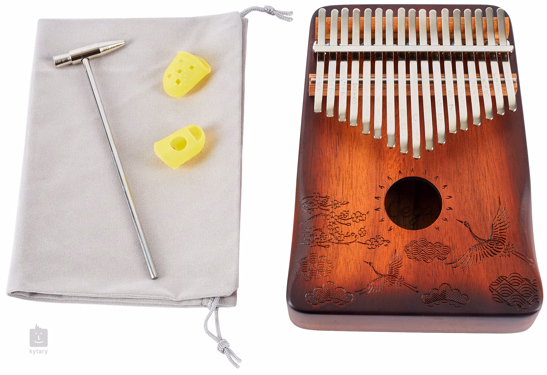 Kalimba je unikátní melodický nástroj, který přidá do vaší tvorby nebo live performance unikátní a nezaměnitelný prvek. Může sloužit k doprovodné nebo sólové hře. Kalimby od firmy Cega jsou vyráběny z kvalitních dřevin, sušených pouze přirozenou cestou, což jim poskytuje skvělé zvukové vlastnosti a maximální stabilitu. Tento model je vyroben z ověřeného mahagonového dřeva a vybaven ozvučnicovou dírou, která zvuku nástroje přidá na síle a hutnosti. Klávesy z karbonové oceli pak nástroji poskytují čitelný a hlasitý, avšak stále příjemně vřelý zvuk. Na klávesách najdete také vyryté tóny, což pomůže v orientaci zejména začínajícím hráčům.