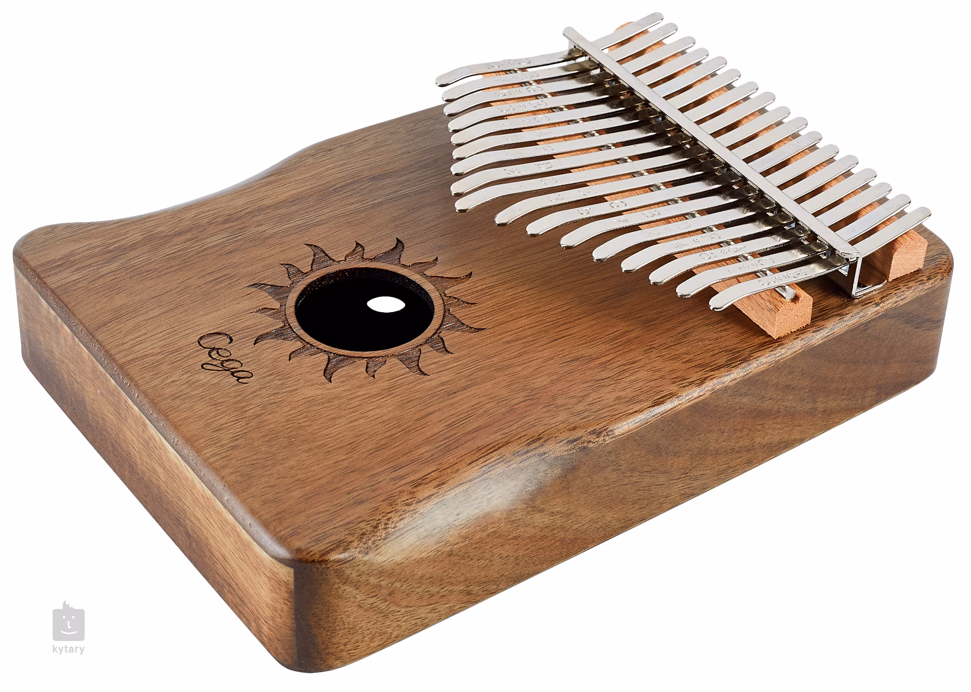 Kalimba je unikátní melodický nástroj, který přidá do vaší tvorby nebo live performance unikátní a nezaměnitelný prvek. Může sloužit k doprovodné nebo sólové hře. Kalimby od firmy Cega jsou vyráběny z kvalitních dřevin, sušených pouze přirozenou cestou, což jim poskytuje skvělé zvukové vlastnosti a maximální stabilitu. Tento model je vyroben z akáciového dřeva a vybaven ozvučnicovou dírou, která zvuku nástroje přidá na síle a hutnosti. Klávesy z karbonové oceli pak nástroji poskytují čitelný a hlasitý, avšak stále příjemně vřelý zvuk. Na klávesách najdete také vyryté tóny, což pomůže v orientaci zejména začínajícím hráčům.