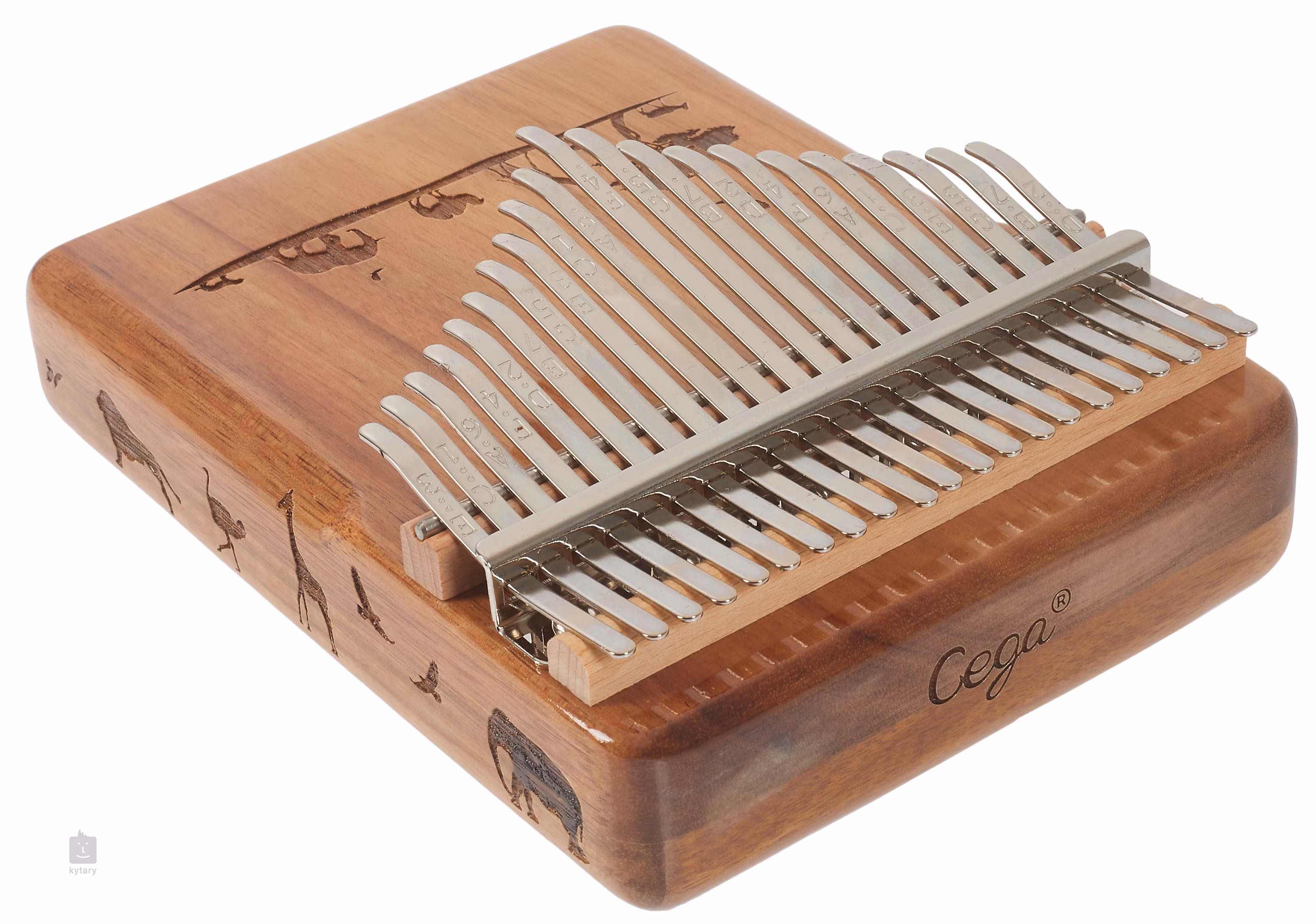 Kalimba z krásné akácie osazená jednadvaceti klávesami z karbonové oceli a laděná v C. Zdobená je řezbou kráčející zvěře. Součástí balení je i přepravní obal chránící nástroj proti nežádocímu poškození.