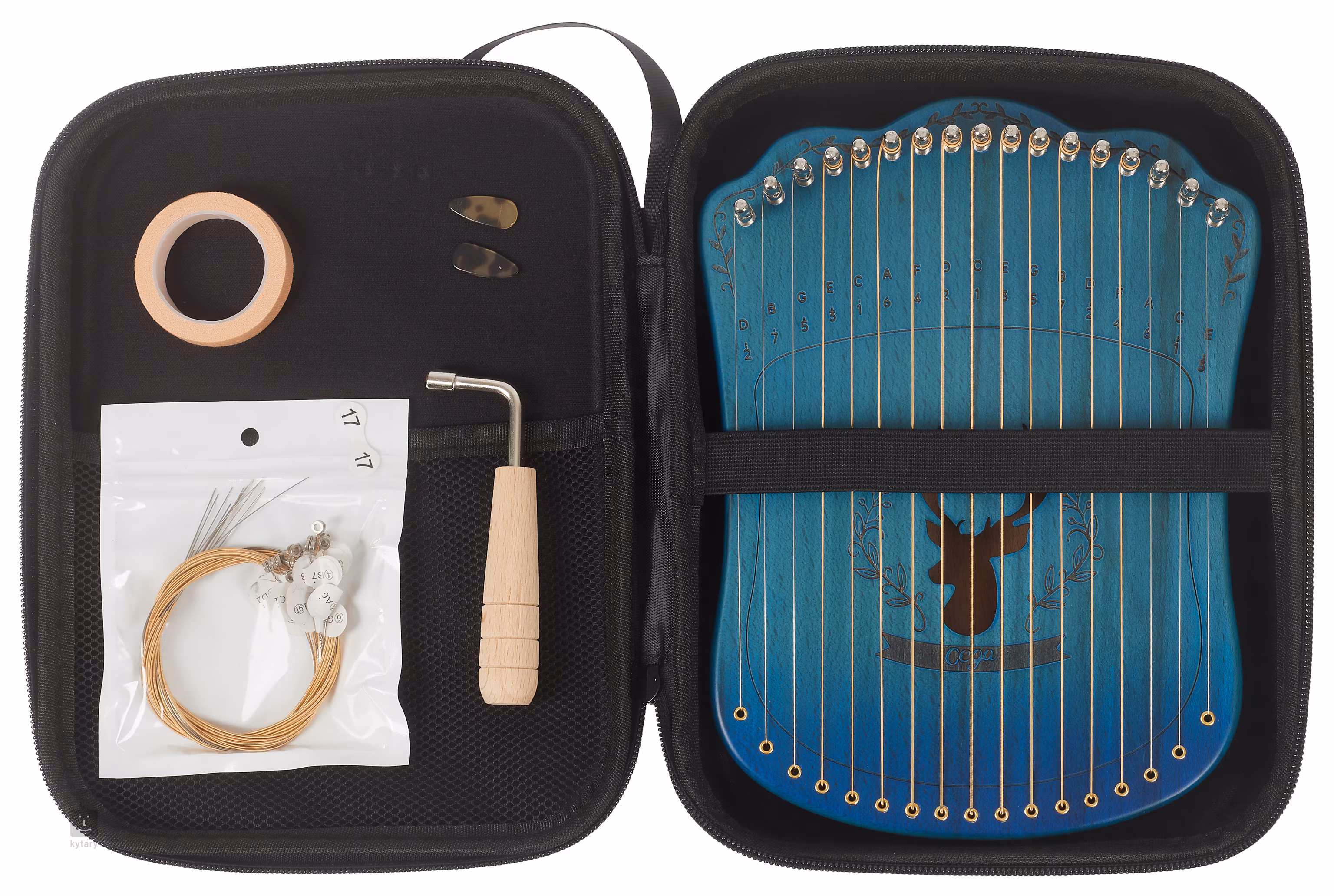 Harpika je velmi mladý nástroj, který vznikl spojením harfy a kalimby. Zpravidla mívá stejné noty jako kalimba a struny jsou natažené přes dřevěné nebo akrylové tělo. Tento nástroj se perfektně hodí k relaxaci a zamilují si ho i děti. Tato harpika disponuje sedmnácti strunami laděnými v C dur. Součástí balení je skořepinové pouzdro a ladící klička.