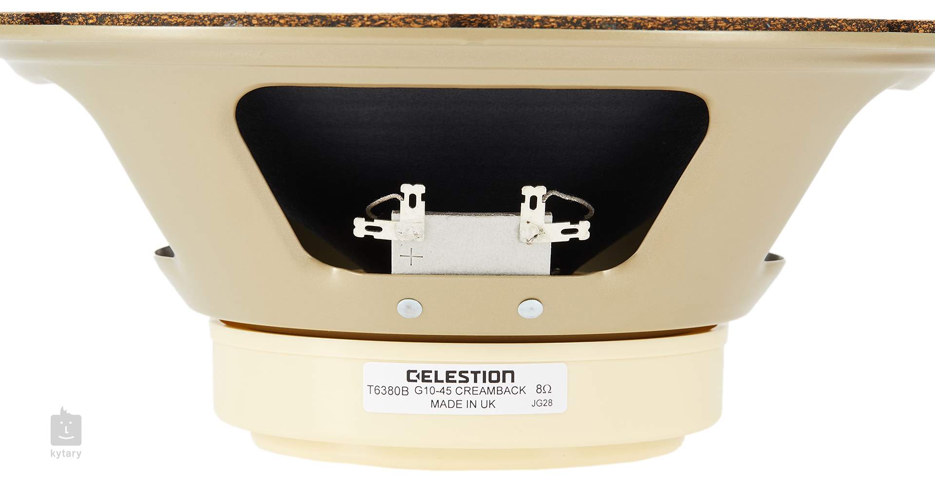 Celestion G10 Creamback nabízí vřelý expresivní a vyvážený tón reproduktorů Creamback v desetipalcovém formátu. Jedná se o ručně vyrobený reproduktor v UK s keramickým magnetem, cívkou (4,45 cm) a výkonem 45 wattů.
