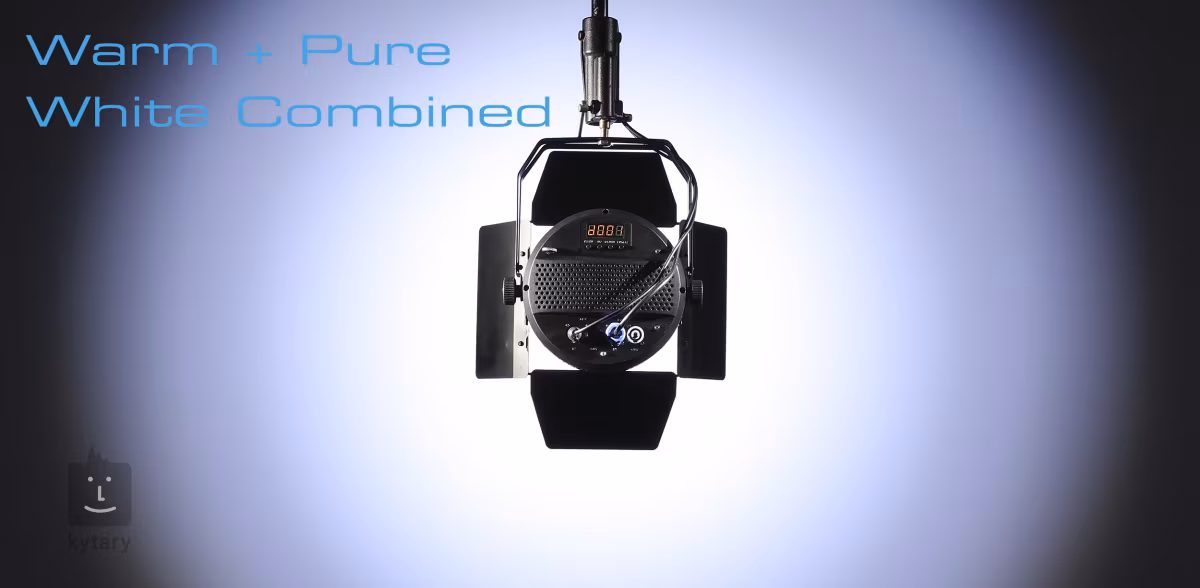Světelný zdroj tvoří jedna 200wattová COB LED dioda rozdělená do dvou zón po 100 W. Jedna zóna vyzařuje studené bílé světlo o barevné teplotě 5600 K, zatímco druhá nabízí teplejší tóny o 3200 K. Pomocí DMX lze tyto dvě barvy kombinovat dle vašich představ. Díky tomu se reflektor hodí do míst, kde je potřeba bílé osvětlení s měnitelnou barevnou teplotou, jako jsou divadelní představení, umělecké výstavy nebo muzejní expozice. Navíc disponuje funkcí lineárního tlumení světla pro plynulé ovládání intenzity osvětlení a poslouží také jako stroboskop.