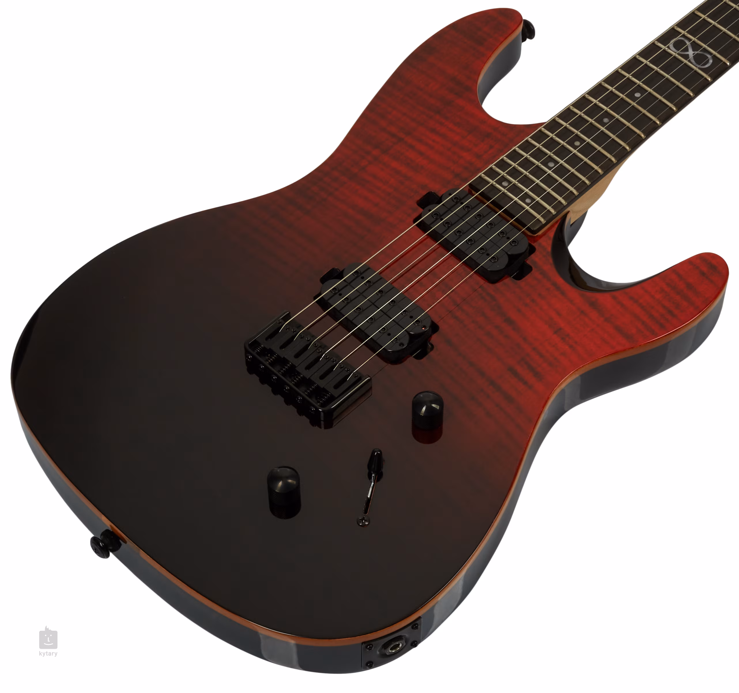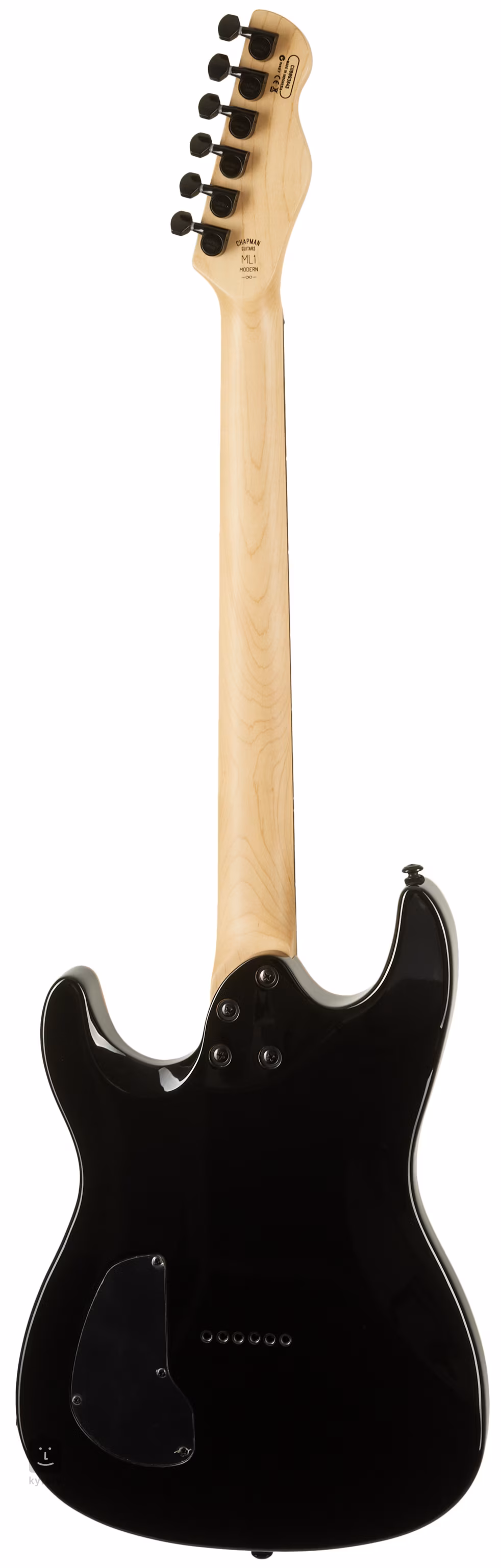 Chapman ML1 Modern Black Blood V2 ze série Standard je univerzální nástroj, který bude doma v řadě hudebních stylů. Herní komfort zajišťuje lehké, mahagonové tělo s výraznými výkroji, javorový krk s příjemným C profilem, který dobře sedne většině hráčů a ebenový hmatník se zaoblenými hranami. Uchycení strun, procházejících skrze kobylku, poskytuje kytaře delší sustain a větší stabilitu ladění. Cívky humbuckerů Chapman Sonorous Zero lze „tapnout“ pomocí vysouvacího ovladače tónové clony a získat tak i single-coil zvuk.
