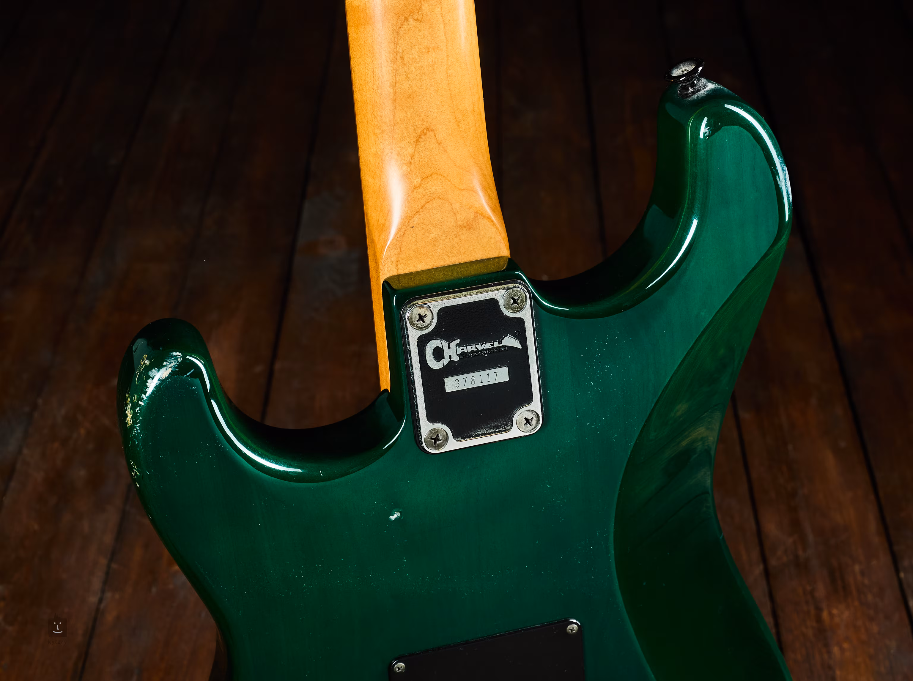 V kombinaci zelené transparentní barvy na těle se zlatým hardwarem je tento nástroj poměrně vzácný.