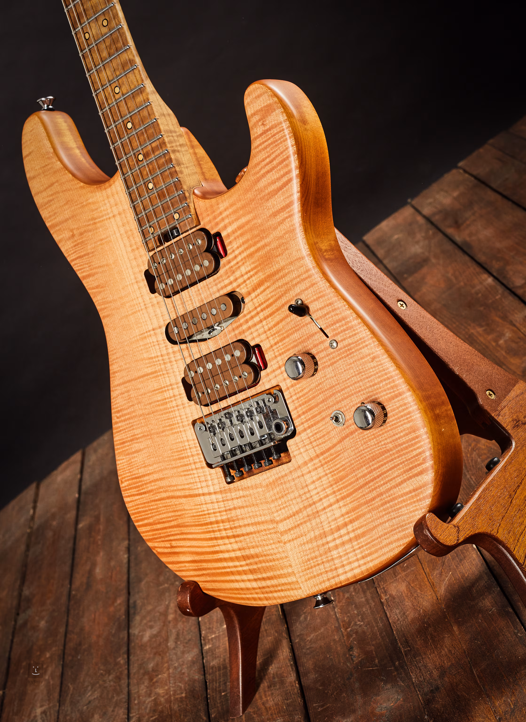 Základem je model San Dimas sestavený z unikátního těla z pečené lípy s javorovým topem na vrchu. Pečený javorový krk má hmatník s moderním compound radiem 12"-16" a nerezovými jumbo pražci. Snímače jsou navinuté přesně podle potřeb Guthrieho Govana v konfiguraci H-S-H.