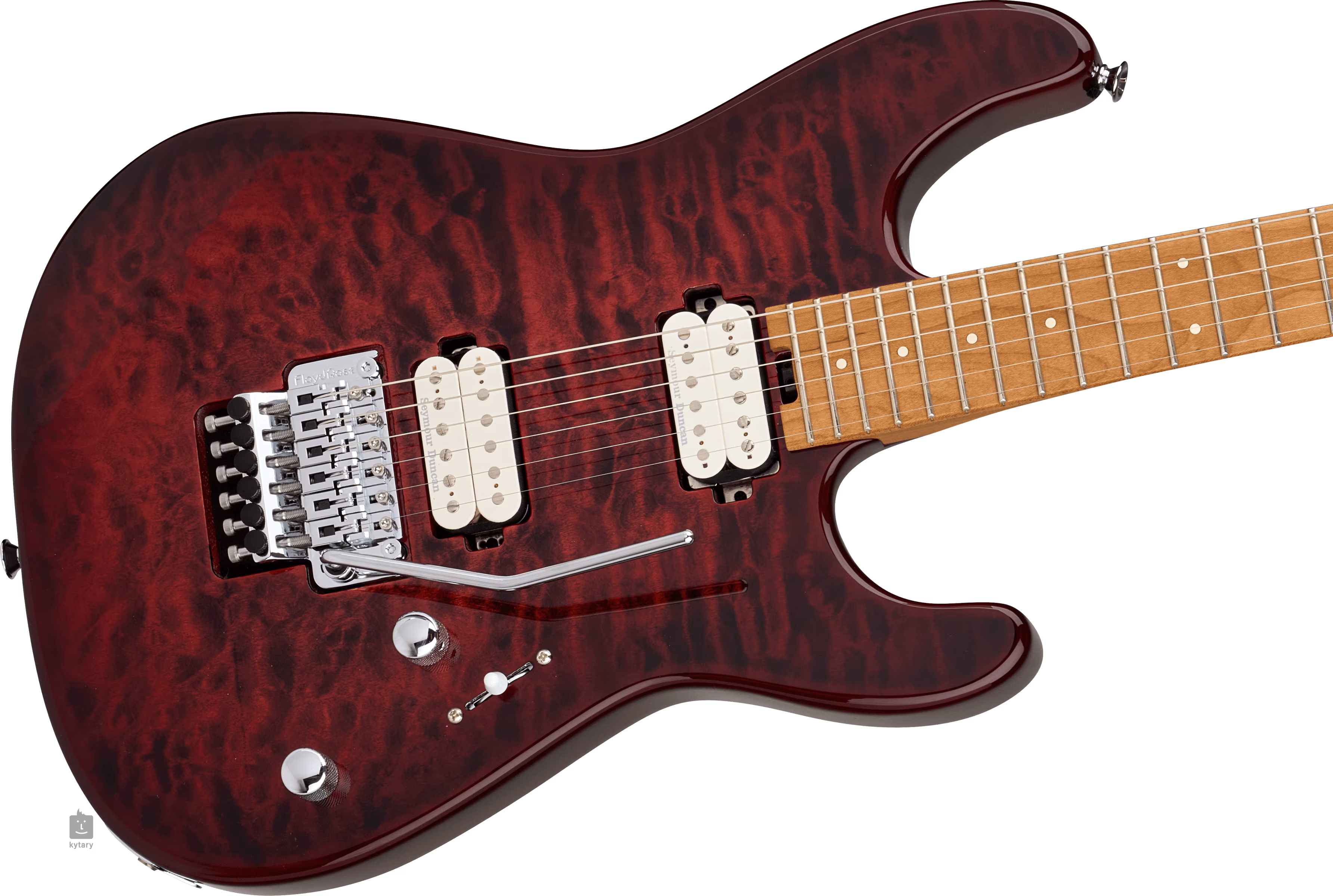 Elektrická kytara Pro-Mod Plus SD1 FR MN SNG značky Charvel nabízí Strat/Superstrat design ze začátku 80. let pojmenovaný podle místa vzniku - kalifornského San Dimas.