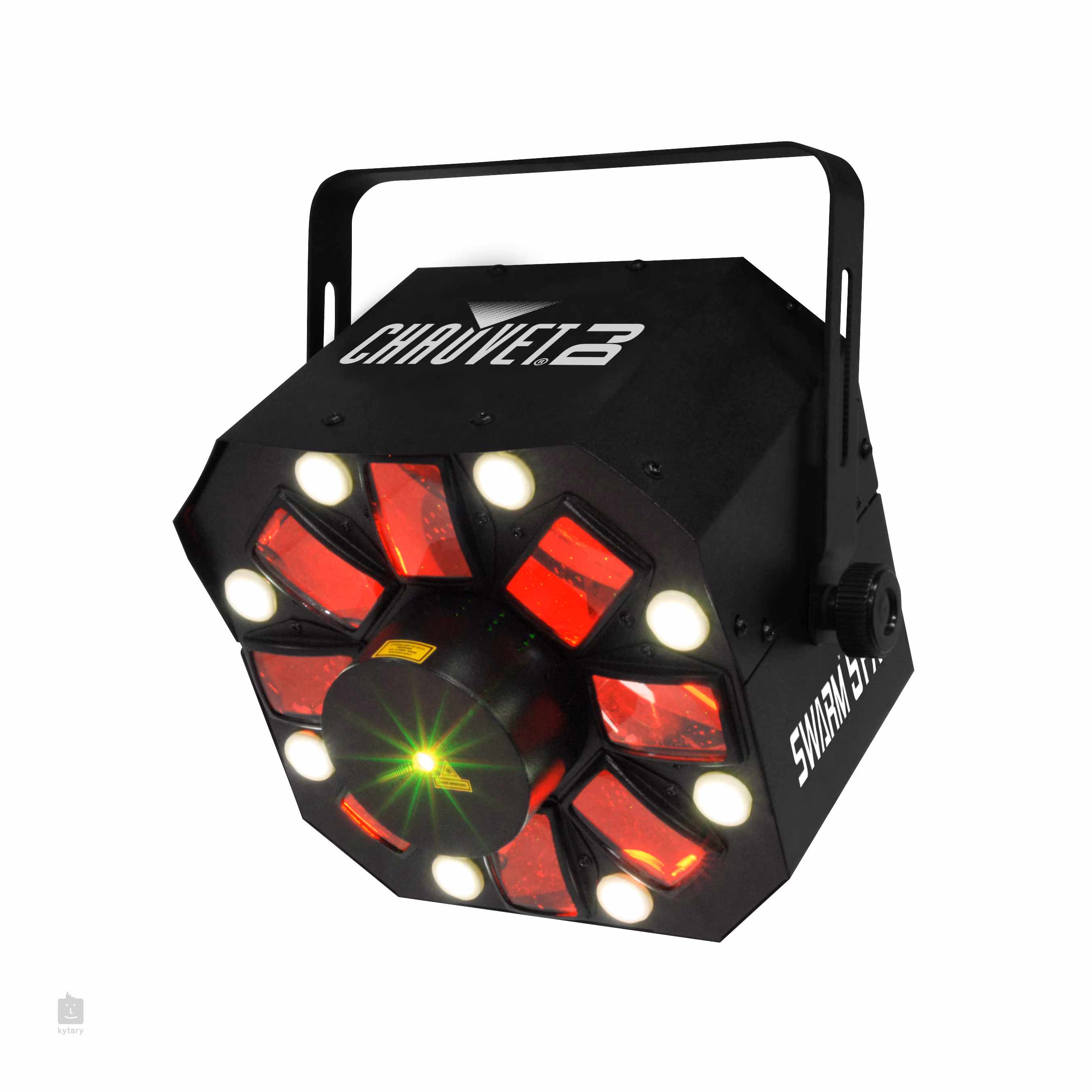 LED efekt Swarm 5 FX v sobě kombinuje tři zařízení. LED RGBAW rotující derby efekt, stroboskop s bílými LED zdroji a laser projektor generující tisíce červených a zelených paprsků. Automatické programy Swarm 5 FX lze řídit hudbou pomocí vestavěného mikrofonu (výborně reaguje na basové frekvence). DMX vstup zaručuje sofistikované ovládání na 9 DMX kanálech. Swarm 5 FX je vhodný pro pevné i mobilní instalace nebo jako hlavní efekt pro menší taneční parkety.