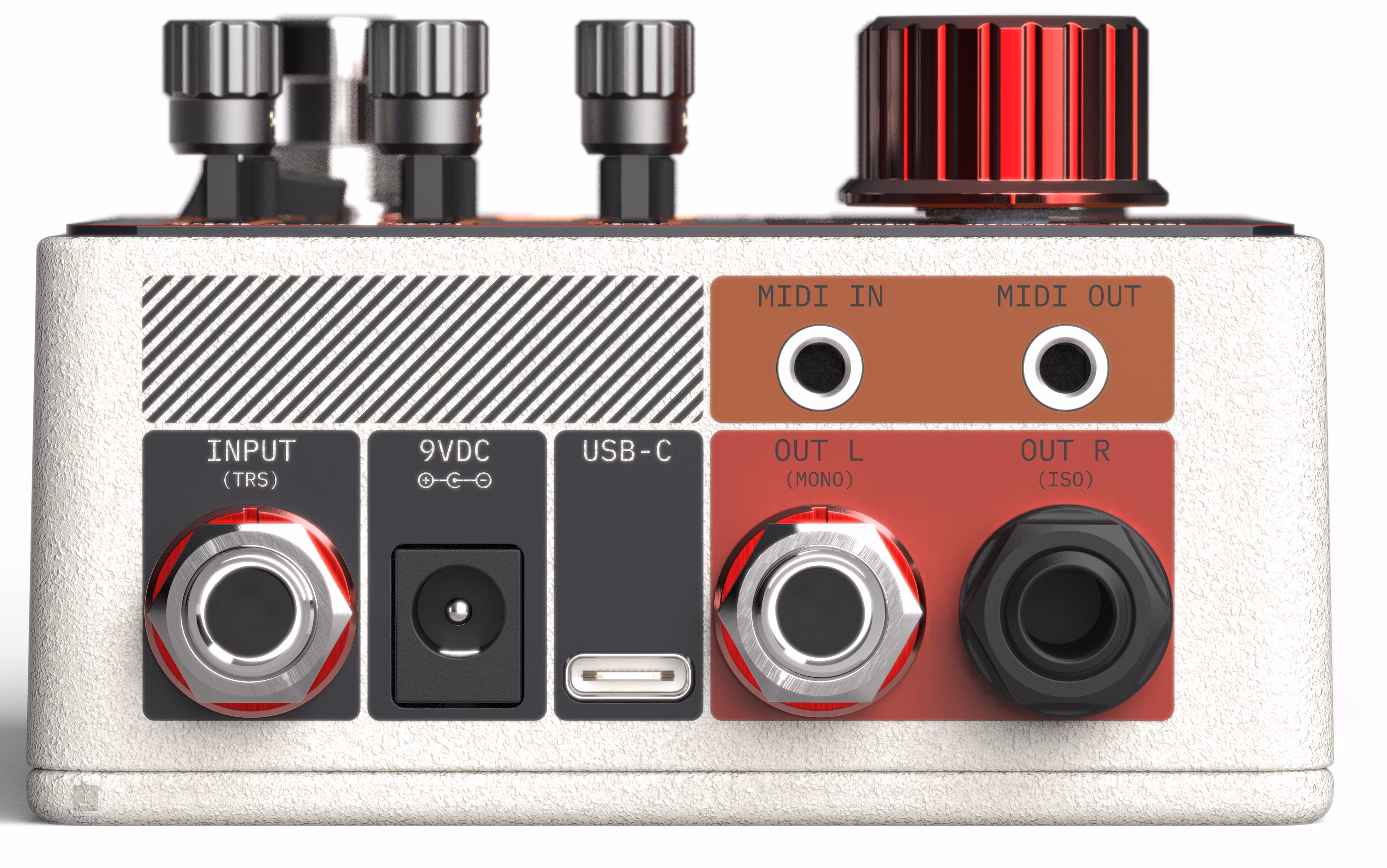 Pedál disponuje také funkcí Freeze, která vám umožní zvuk efektu v libovolné chvíli zmrazit a vytvořit zvukové plátno, přes které můžete dále hrát. Vaše kytara bude nadále produkovat zpracovaný signál, i když bude funkce Freeze aktivní, což u většiny efektů není samozřejmostí. Třemi zbylými potenciometry můžete ovládat decay reverbu, tónovou clonu a výšku signálu zmrazeného funkcí Freeze. Přímo na krabičce si můžete uložit a přepínat mezi třemi presety a až 128 jich můžete vyvolat přes MIDI připojení. Pedál nabízí stereo vstup a dva výstupy pro pravou a levou stranu, takže poskytuje plně prostorový zvuk. Velkou výhodou je dále USB-C konektor, díky němuž může efekt fungovat jako zvuková karta nebo externí plugin a tím vám usnadnit nahrávání v DAW.