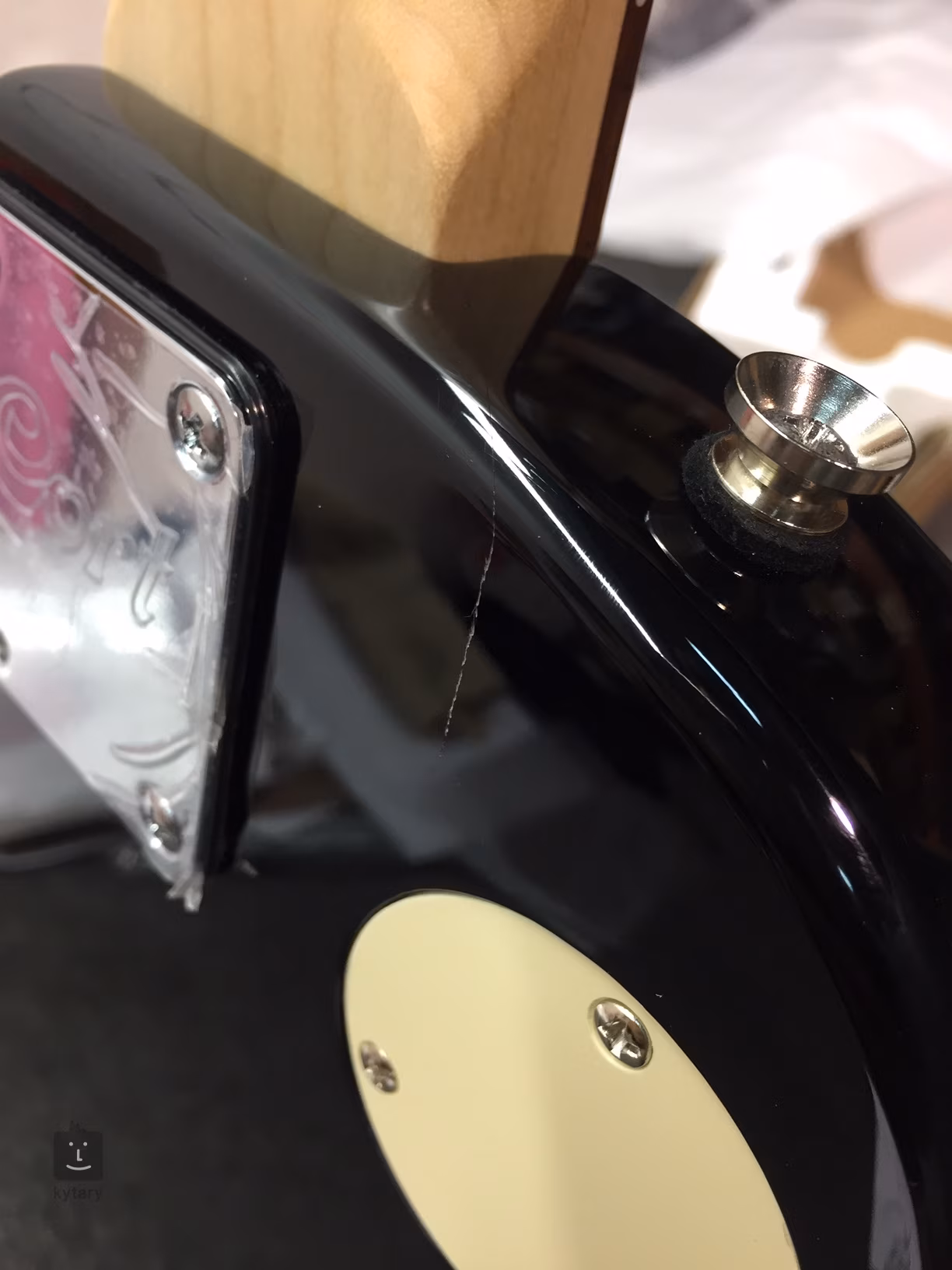 Prasliny na těle nástroje na straně a u uchycení krku (viz foto).