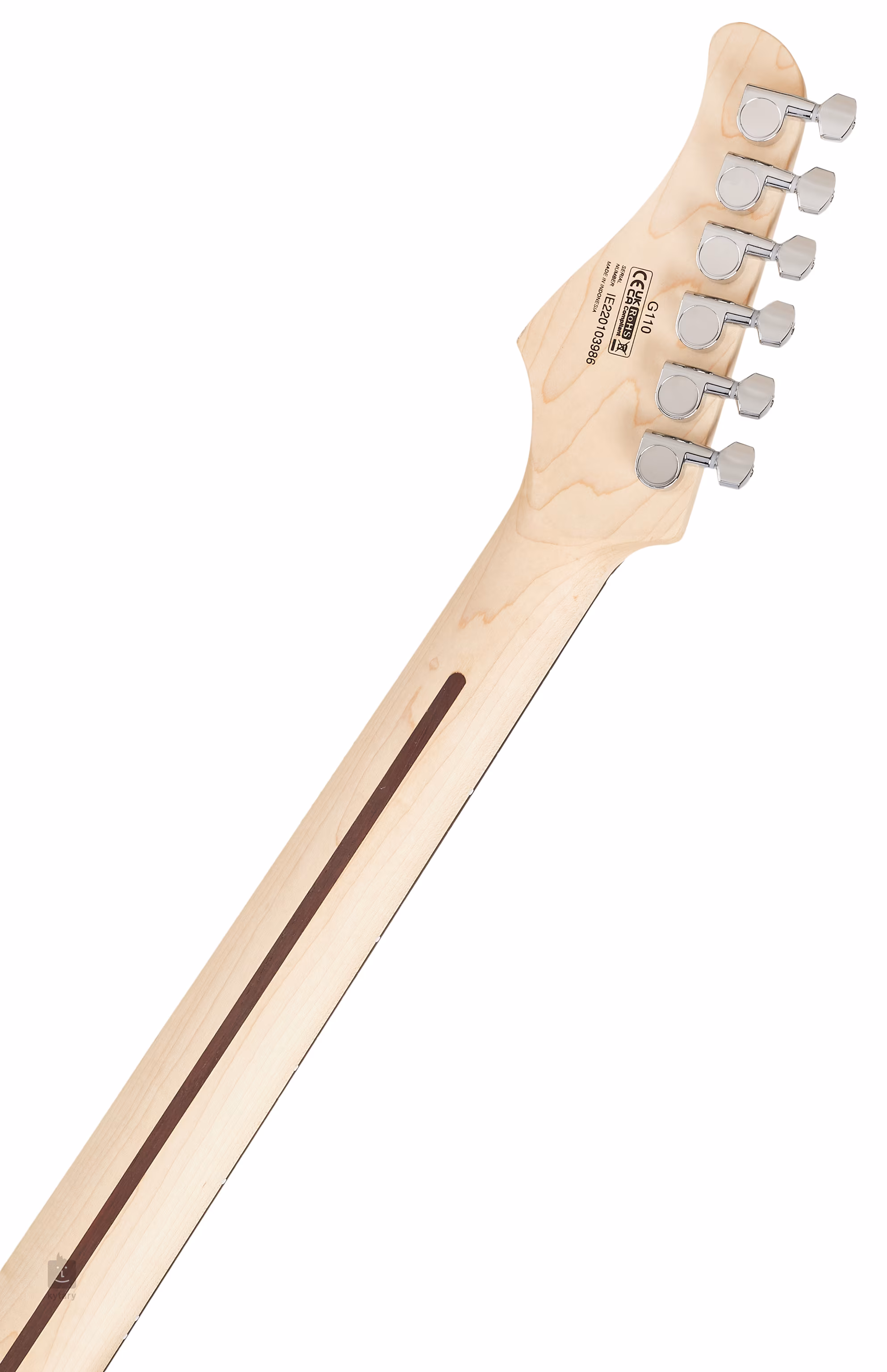 Elektrická kytara G110 OPBC patří k základním modelům řady. Díky redukované hmotnosti topolového těla (tloušťka těla odpovídá 4 cm) bude zvláště vyhovovat mladším začínajícím hráčům. Tvarovaná patka přišroubovaného javorového krku usnadňuje dohmat na vyšších polohách hmatníku. Samotný hmatník je zhotoven ze dřeva jatoba.