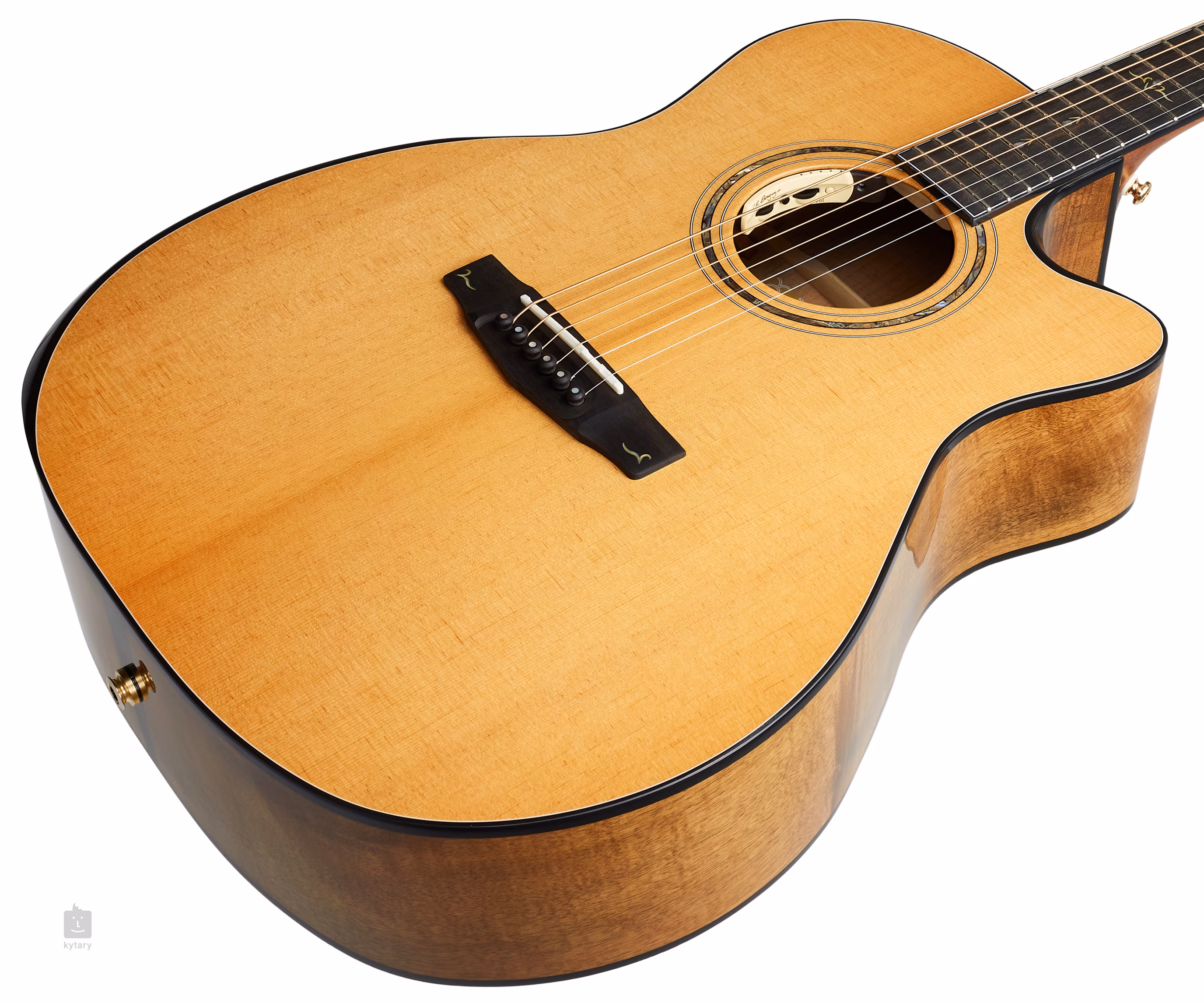 Elektroakustická kytara Gold-Edge nabízí populární tvar těla typu Auditorium vhodný pro hru trsátkem i prstovou technikou a možnost ozvučení díky osazení aktivní elektronikou L. R. Baggs Anthem s ovladači Volume a Tone decentně zasazenými do ozvučnicového otvoru kytary.