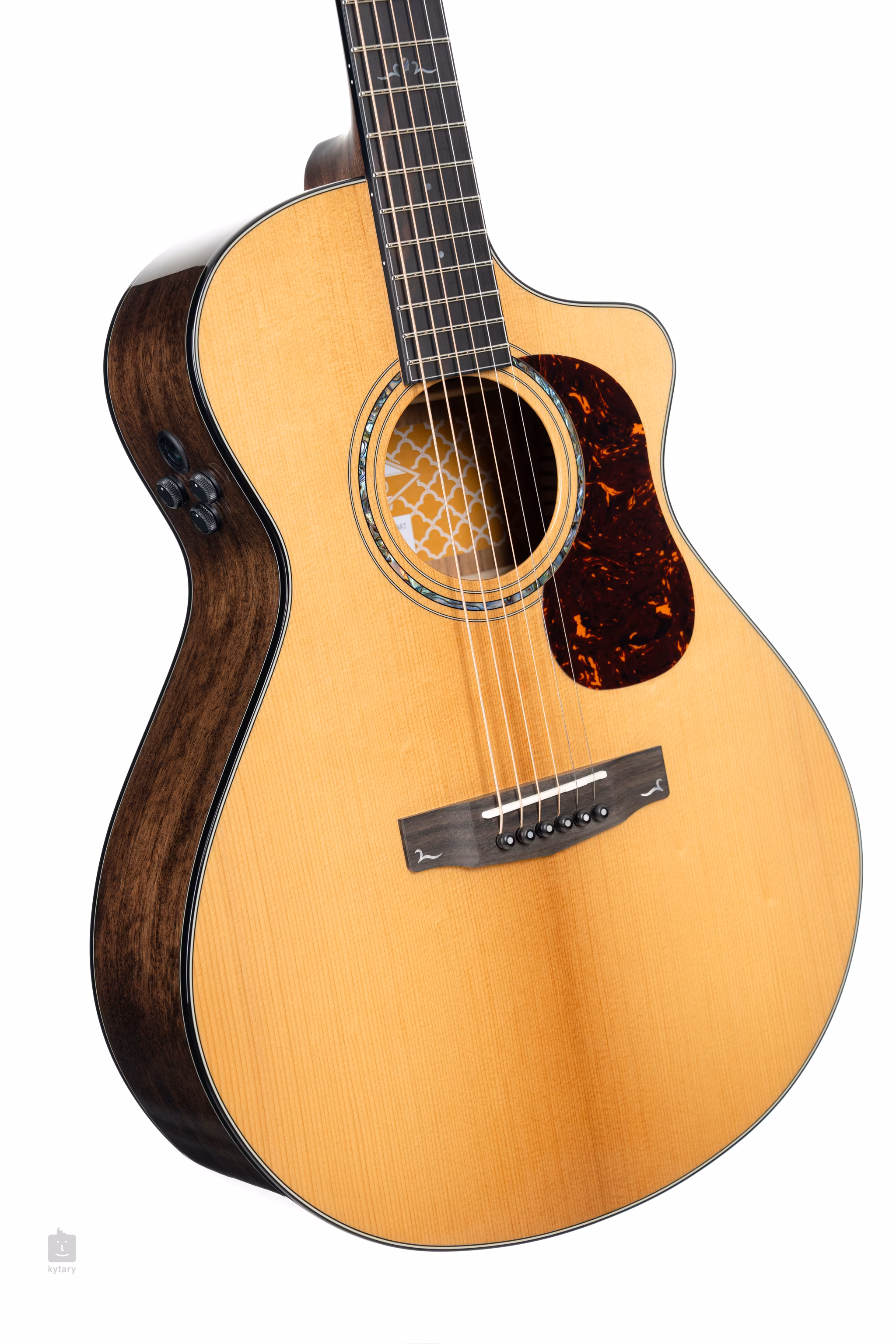 Uchycení strun v ebenové kobylce a jejich vedení přes sedlo a nultý pražec z pravé kosti zaručuje optimální přenos vibrací do těla nástroje a dobrý sustain. Stabilitu ladění zajišťují mechaniky Deluxe Vintage Gold ve zlatém provedení. Kvalitu zpracování podtrhují tradiční dekorativní prvky v podobě zdobné perleťové rozety (Abalone), černé lemovky doplněné linkami obvodové výložky, perleťových polohových značek na hmatníku (MOP, Abalone), perleťového inlaye a firemního loga na hlavici (MOP, Abalone), ebenových kolíčků do kobylky a pickguardu z imitace želvoviny.
