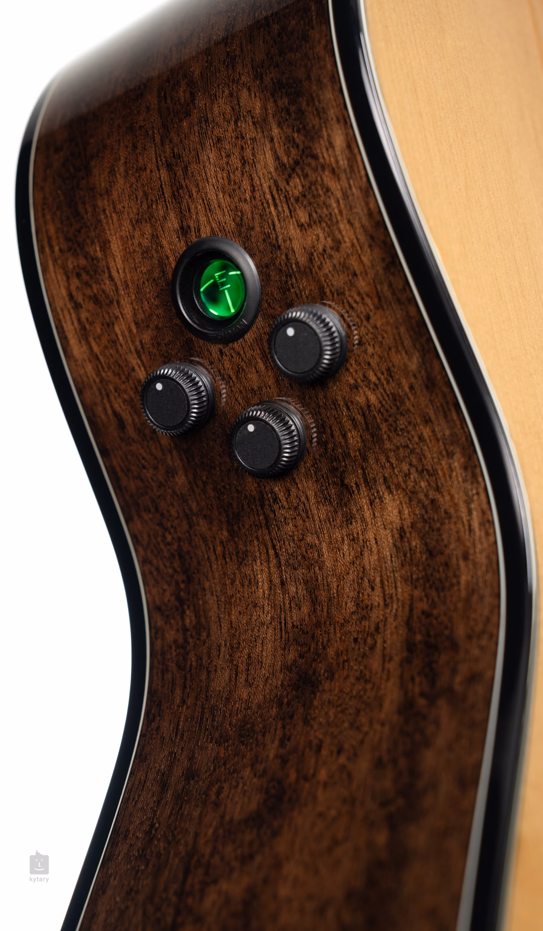 Elektronika Fishman Flex Blend využívá k věrnému zachycení akustického zvuku výhod kombinace snímání podkobylkovým piezo snímačem a mikrofonem. Ovladači v lubu kytary upravíte poměr mic/piezo snímání, hlasitost, EQ a aktivujete funkce phase a zabudovanou ladičku.