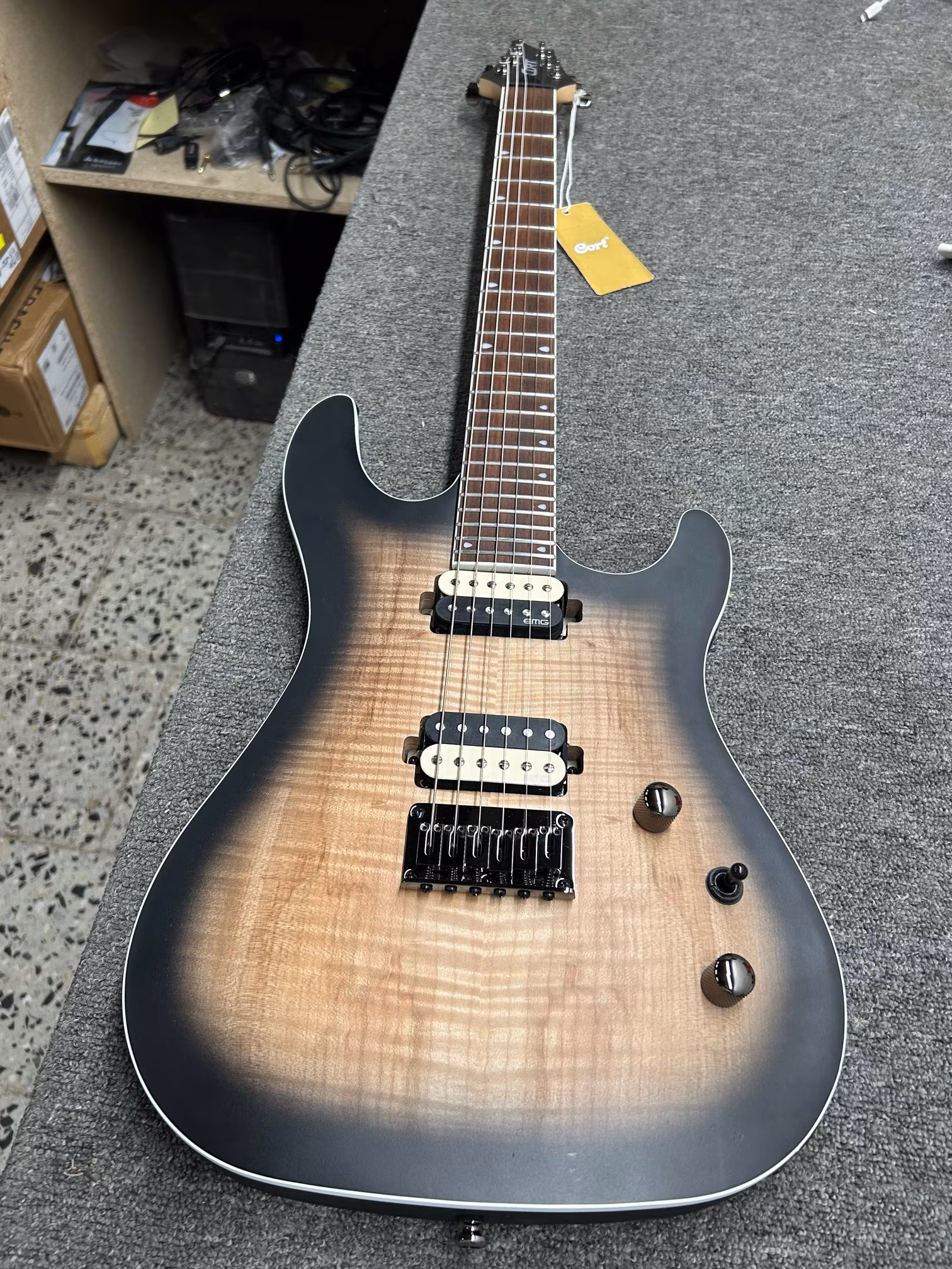 Řada KX značky Cort představuje elektrické kytary s moderním designem. Stejně jako v případě dalších produktů značky Cort se jedná o cenově dostupnější nástroje, které potěší hráče všech úrovní pokročilosti. Kytary s označením KX300 patří k vyšším modelům série. Už na první pohled upoutají pěknou kresbou dřeva javorového topu (spalted maple) a efektní barevnou úpravou. Samotné tělo je zhotoveno z mahagonu. K přišroubovanému rychlému krku z tvrdého javoru je přilepen hmatník ze dřeva jatoba osazený čtyřiadvaceti pražci, orientaci na hmatníku usnadňují poziční tečky s designem dešťových kapek (raindrop). Dva humbuckery EMG RetroActive s vysokým výstupním signálem a populárním černobílým „zebra“ designem poskytují kytaře hutný, dynamický, zvuk s jasnou artikulací tónu, který nejvíce oceníte v moderních rockových, metalových a core žánrech. Ke zvukovým úpravám slouží potenciometry hlasitosti, tónové clony a třípolohový přepínač snímačů. Uchycení strun v pevné kobylce (šesti samostatných kamenech) a skrze tělo nástroje je zárukou dobrého sustainu. Stabilitu ladění zaručují chromované mechaniky.