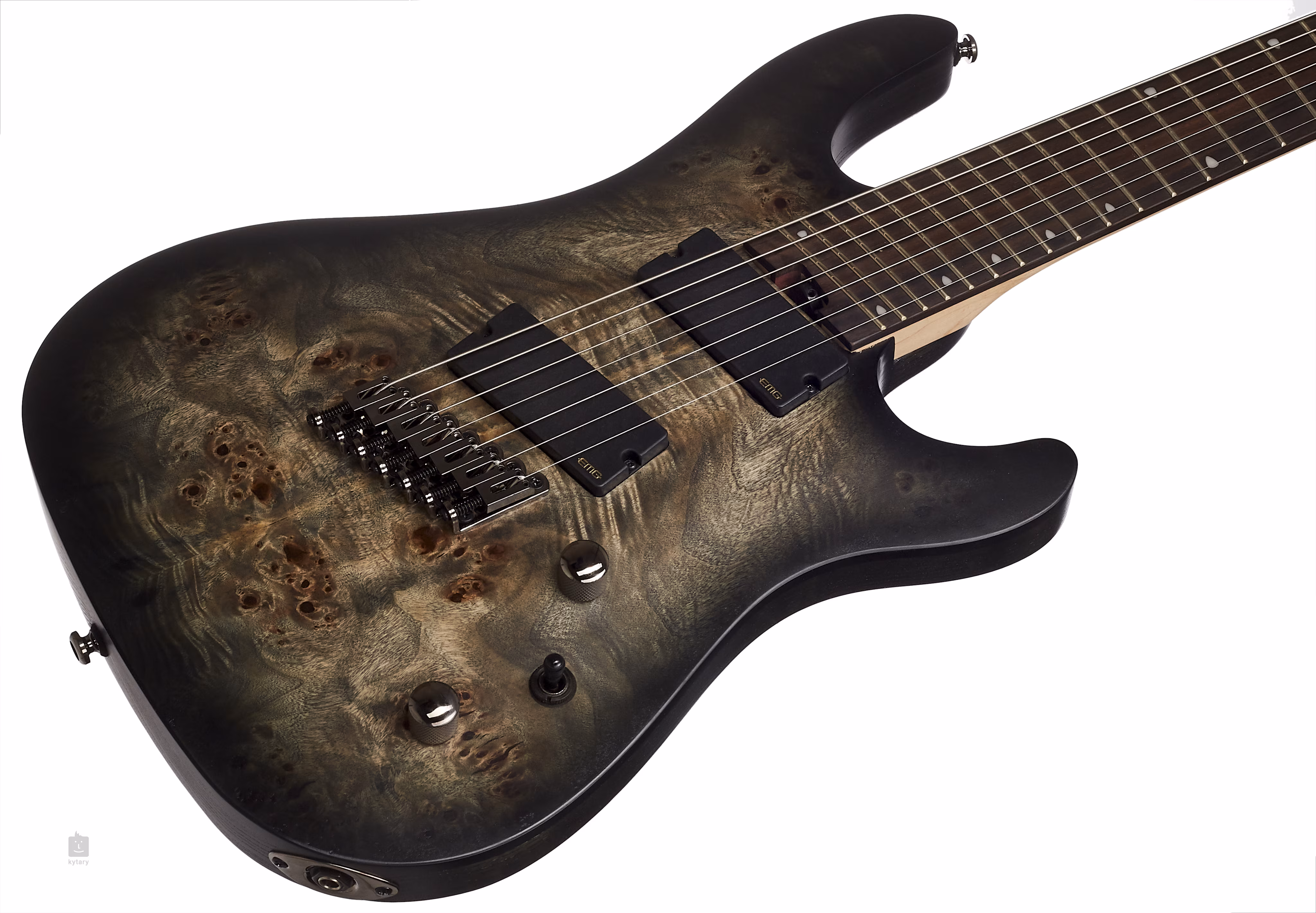 Dva humbuckery EMG 707 s vysokým výstupním signálem poskytují kytaře hutný, dynamický, zvuk s jasnou artikulací tónu, který nejvíce oceníte v moderních rockových, metalových a core žánrech. Ke zvukovým úpravám slouží potenciometry hlasitosti, tónové clony a třípolohový přepínač snímačů. Uchycení strun v pevné kobylce (šesti samostatných kamenech) a skrze tělo nástroje je zárukou dobrého sustainu. Stabilitu ladění a snadnou výměnu strun zaručují zamykací mechaniky.