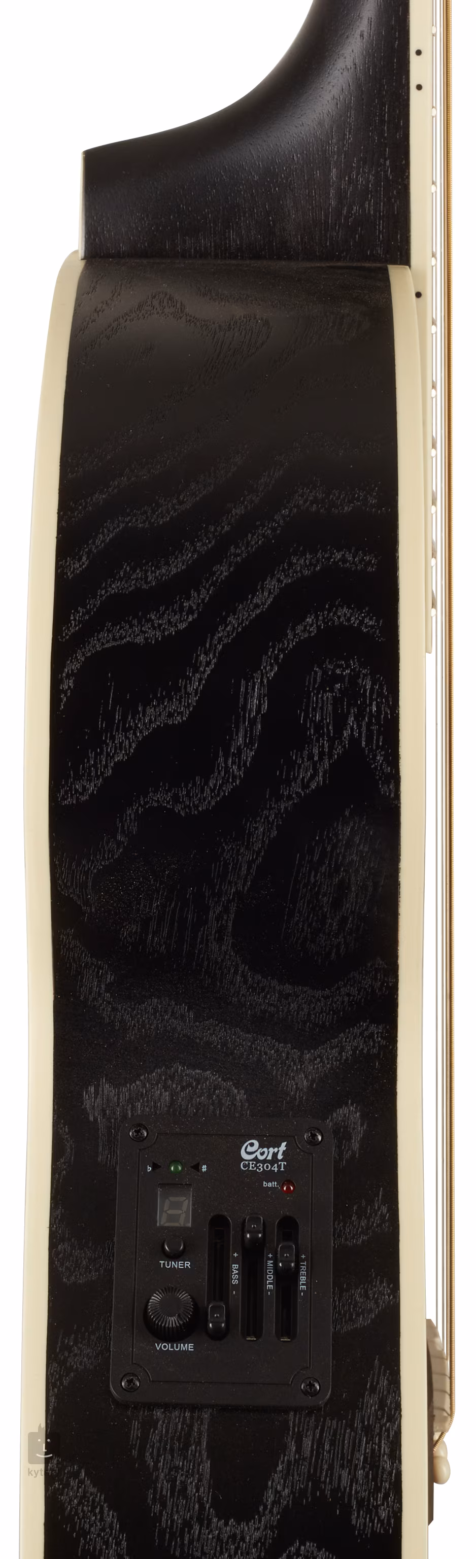O ozvučení nástroje se stará firemní preamp Cort CE304T s integrovanou ladičkou a třípásmovým ekvalizérem. Struny jsou uchyceny ve firemních die-cast mechanikách a kobylce z merbau. Pěkné zpracování podtrhuje obvodová lemovka z imitace slonoviny a rozeta s výrazným červeným prstencem (Red Acryl).