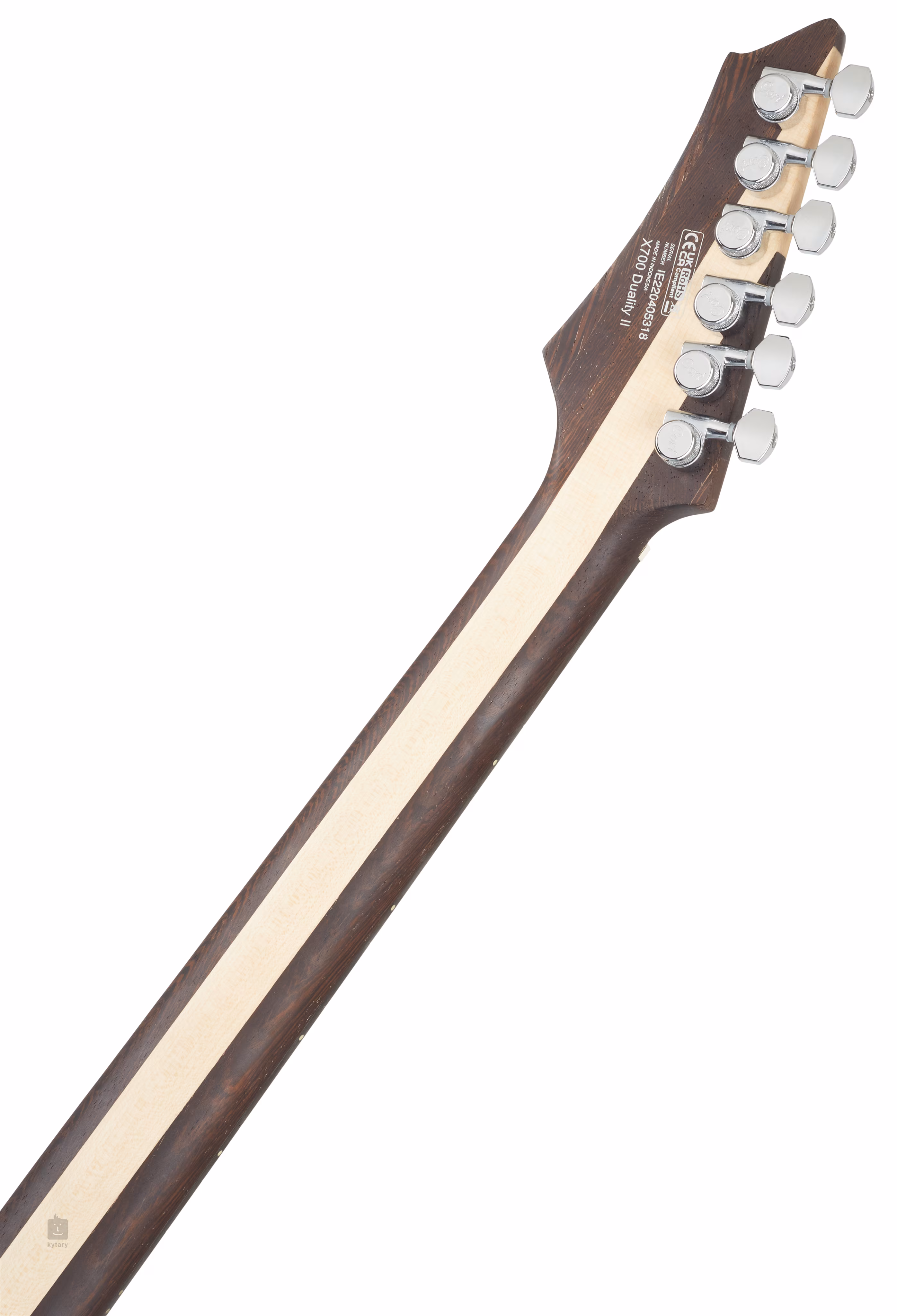 Model X700 Duality II PIB je dalším krokem značky Cort směrem k vyšším modelovým řadám s plně profi parametry, který je nutno brát vážně. Kytara už na první pohled upoutá moderním dotaženým designem s efektní vrchní dýhou z fládrovaného javoru na mahagonovém těle a působivou barevnou úpravou Polar Ice Burst. K přišroubovanému krku ze tří kusů javoru a panga panga je přilepen ebenový hmatník osazený čtyřiadvaceti pražci z nerezové oceli. Orientaci po ploše hmatníku usnadňují perleťové poziční tečky (abalone) a luminiscenční tečky na boku.