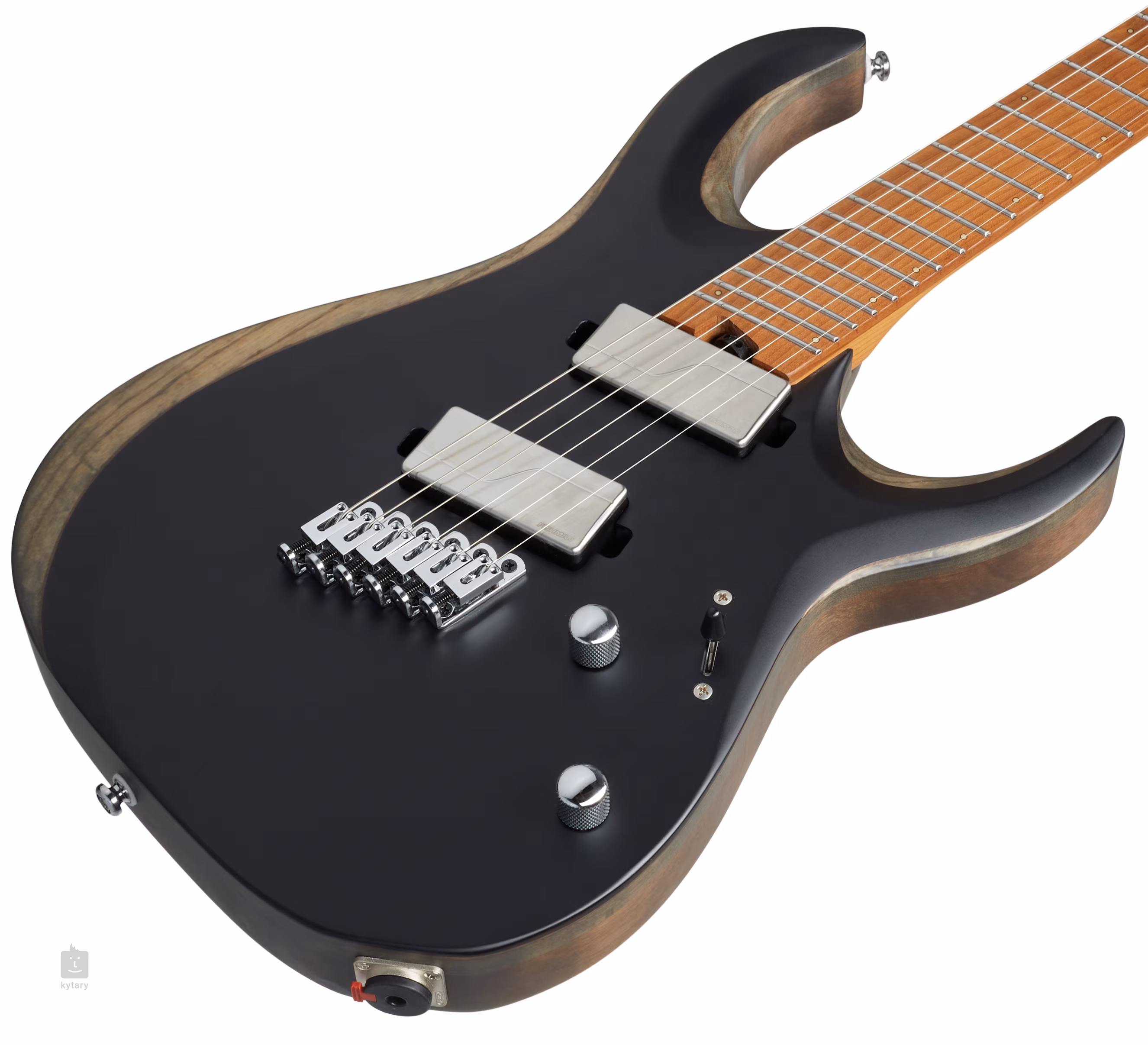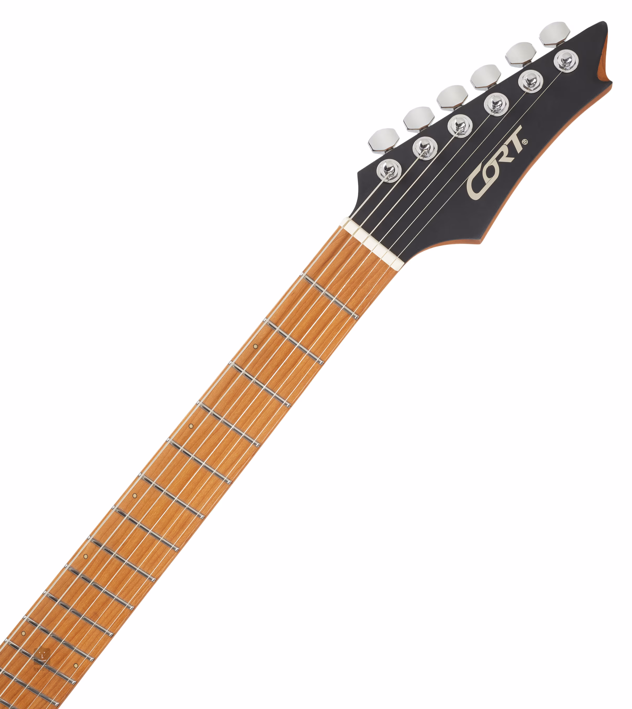 Model X700 Mutility BKS je dalším krokem značky Cort směrem k vyšším modelovým řadám s plně profi parametry, který je nutno brát vážně. Kytara už na první pohled upoutá moderním dotaženým designem s efektní vrchní dýhou z javoru a jasanu na mahagonovém těle. Hlubší výřezy těla (belly cut a výřez spodního rohu) poskytují hráčům maximální herní komfort.