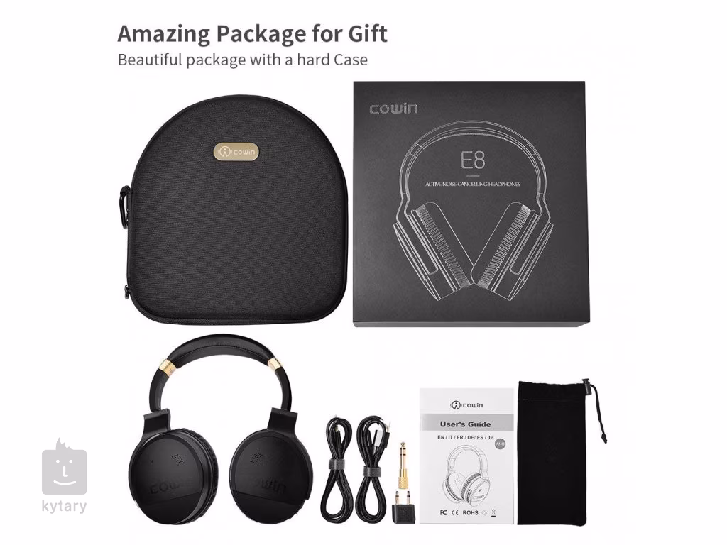 Součástí balení je ochranný robustní cestovní obal, USB kabel a audio kabel pro neomezený poslech hudby, dále adaptér na Jack 6,3 mm TRS a rozdvojka pro společné poslouchání hudby s partnerem nebo přáteli.