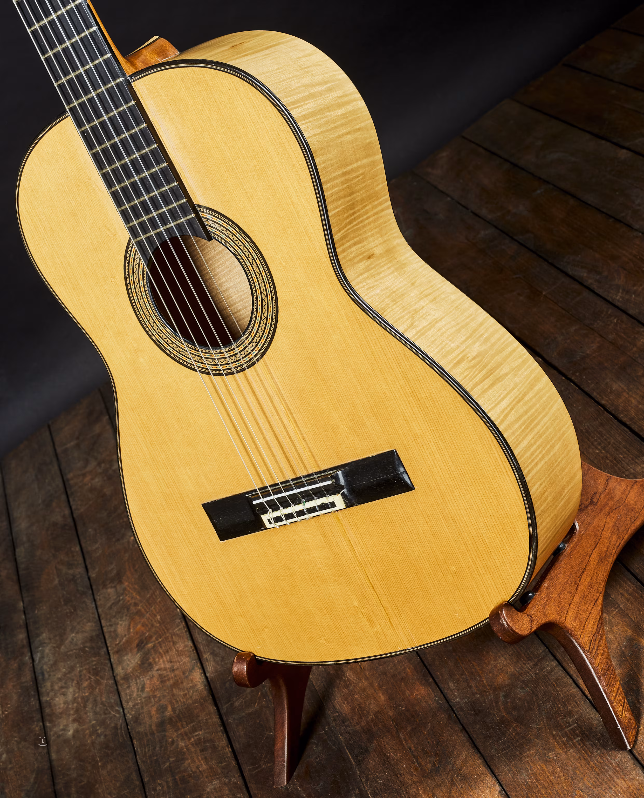 Generálku má kytara již za sebou. Nástroj je po opravě prasklé přední desky (což je u celomasivu vlivem stáří celkem běžné a nijak razantně to hodnotu ani zvuk nesnižuje), přičemž byla přesazena kobylka (původní). Nultý pražec je kostěný.
