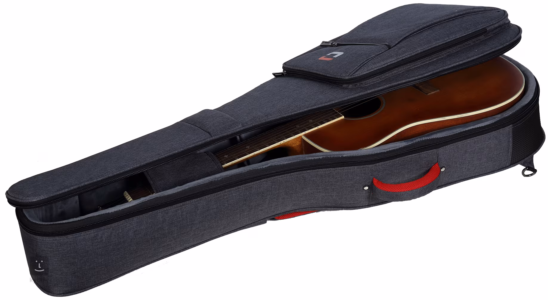 Vnitřek pouzdra je vybaven šedou sametovou podšívkou, která zajišťuje maximální šetrnost ke dřevu nebo laku vašeho nástroje. Součástí je také odnímatelná ochrana kytarové hlavy a podpora krku. Dno obalu je navíc opatřeno plastovou výztuhou, která efektivně tlumí nárazy při pokládání na zem.