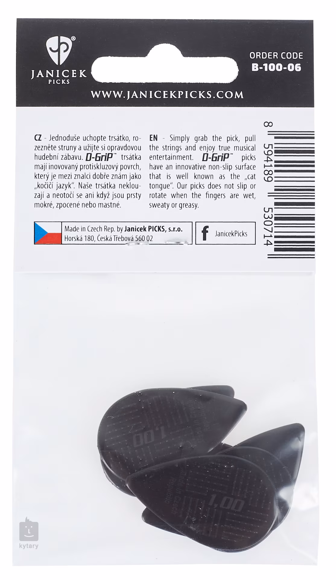 Česká firma Janíček se vývoji trsátek věnuje již od roku 1991 a ze záplavy konkurenčních výrobků vyčnívá jedním podstatným faktorem – vyrábí trsátka, která vám z prstů opravdu nevyklouznou. Speciální povrch D-Grip známý také jako „kočičí jazyk“ je patentově chráněný, a právě díky němu jsou Janíčkova trsátka oblíbená po celém světě.