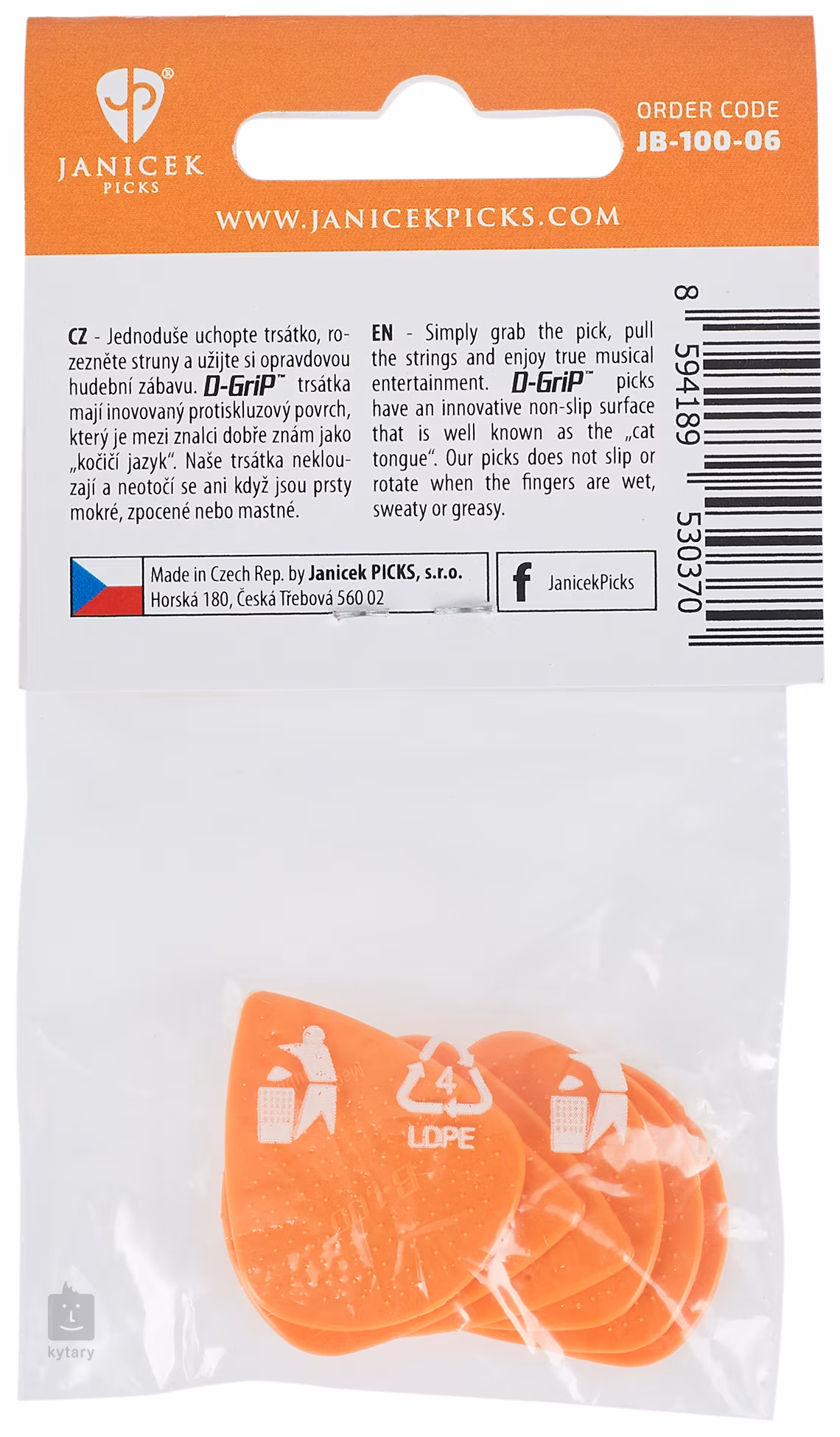 Česká firma Janíček se vývoji trsátek věnuje již od roku 1991 a ze záplavy konkurenčních výrobků vyčnívá jedním podstatným faktorem – vyrábí trsátka, která vám z prstů opravdu nevyklouznou. Speciální povrch D-Grip známý také jako „kočičí jazyk“ je patentově chráněný, a právě díky němu jsou Janíčkova trsátka oblíbená po celém světě.
