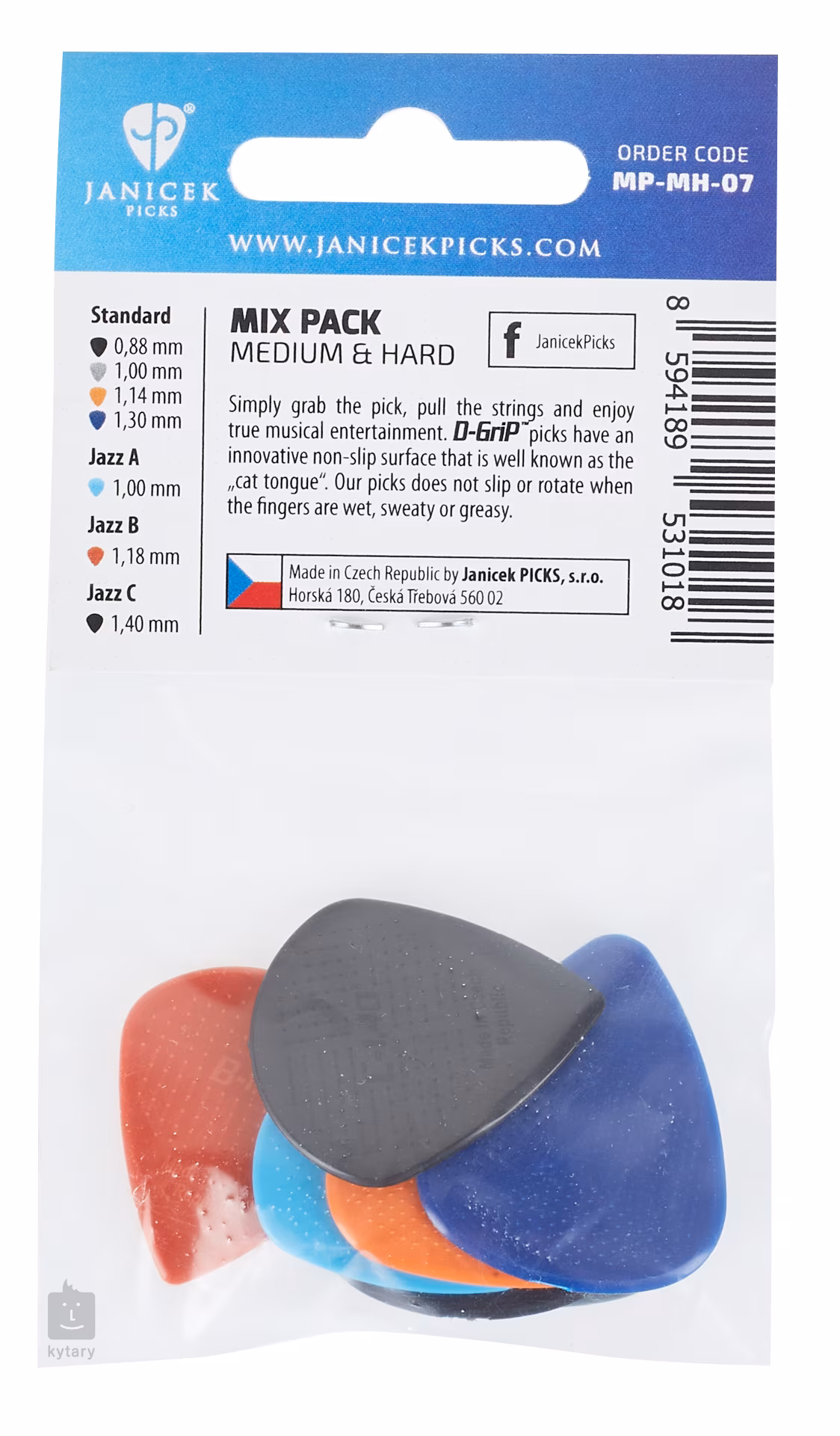Česká firma Janíček se vývoji trsátek věnuje již od roku 1991 a ze záplavy konkurenčních výrobků vyčnívá jedním podstatným faktorem – vyrábí trsátka, která vám z prstů opravdu nevyklouznou. Speciální povrch D-Grip známý také jako „kočičí jazyk“ je patentově chráněný, a právě díky němu jsou Janíčkova trsátka oblíbená po celém světě.