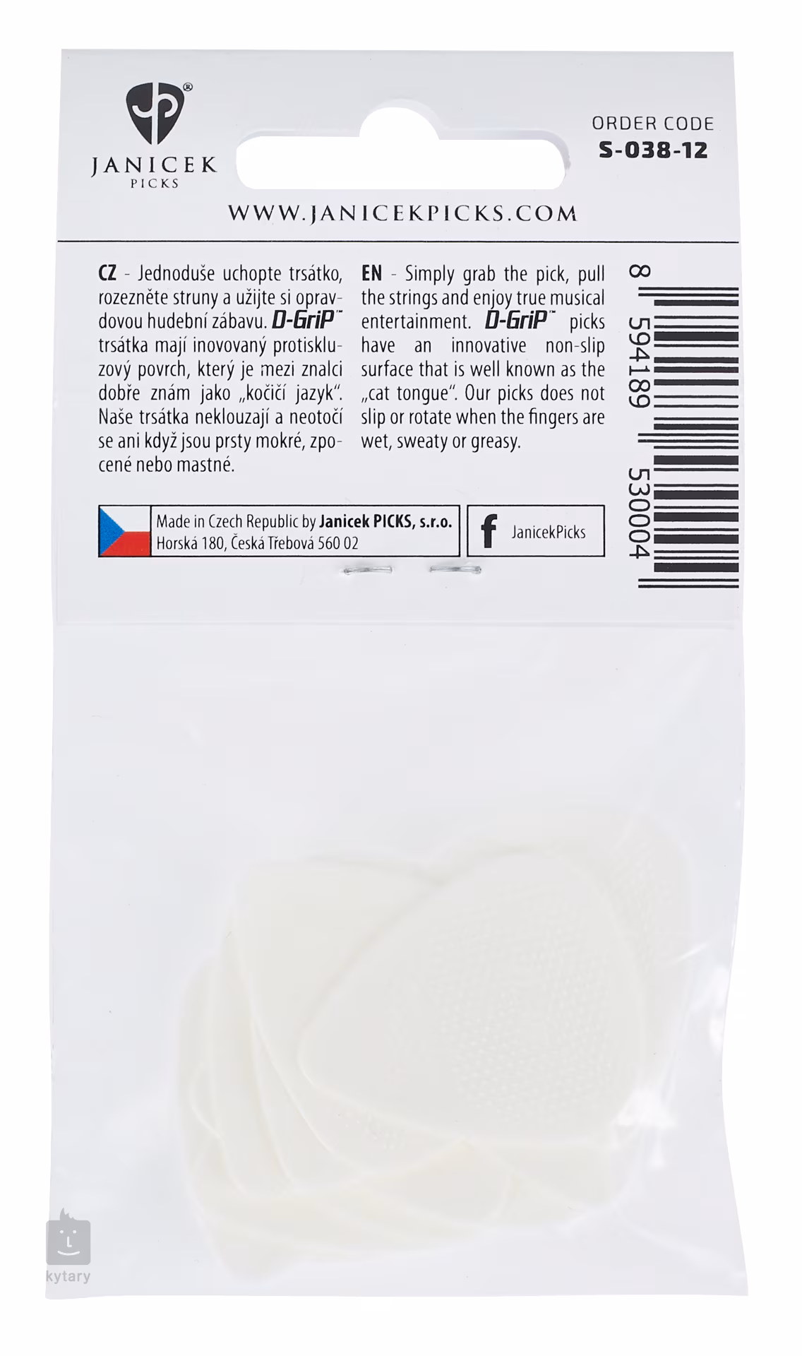 Česká firma Janíček se vývoji trsátek věnuje již od roku 1991 a ze záplavy konkurenčních výrobků vyčnívá jedním podstatným faktorem – vyrábí trsátka, která vám z prstů opravdu nevyklouznou. Speciální povrch D-Grip známý také jako „kočičí jazyk“ je patentově chráněný, a právě díky němu jsou Janíčkova trsátka oblíbená po celém světě.