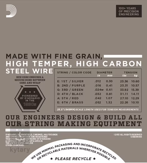 Tloušťky jednotlivých strun: .012/.016/.024w/.032/.042/.052