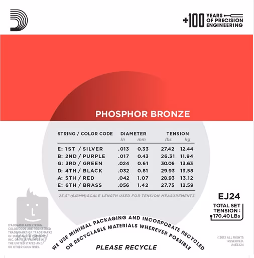 Pokud hledáte struny pro akustickou kytaru se zakulaceným, vřelým zvukem, řada D'Addario Phosphor Bronze pro vás bude tou správnou volbou. Fosforbronz se v dnešní době k výrobě strun používá běžně, ale v roce 1974 to byla právě společnost D'Addario, která tento materiál předvedla úplně poprvé. Od té doby jsou synonymem pro teplý, frekvenčně vyvážený tón, který je vhodný pro všechny možné žánry. Šestihranné ocelové jádro s vysokým obsahem uhlíku jim dodává dlouhou životnost, excelentní intonaci a nádherný tón. V tomto balení najdete struny s tvrdostí 13–56, která je přizpůsobená ladění DADGAD – třetí, čtvrtá a pátá struna jsou měkčí, než ve standardní třináctkové sadě.