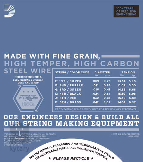 Tloušťky jednotlivých strun: .009/.011/.016/.024/.032/.042