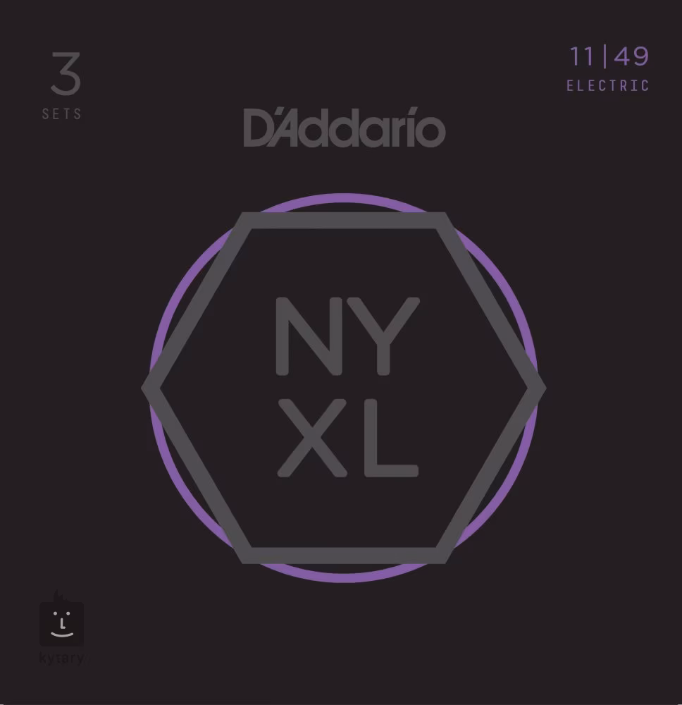 Balení tří sad strun D’addario NYXL o tloušťce 011"/049".