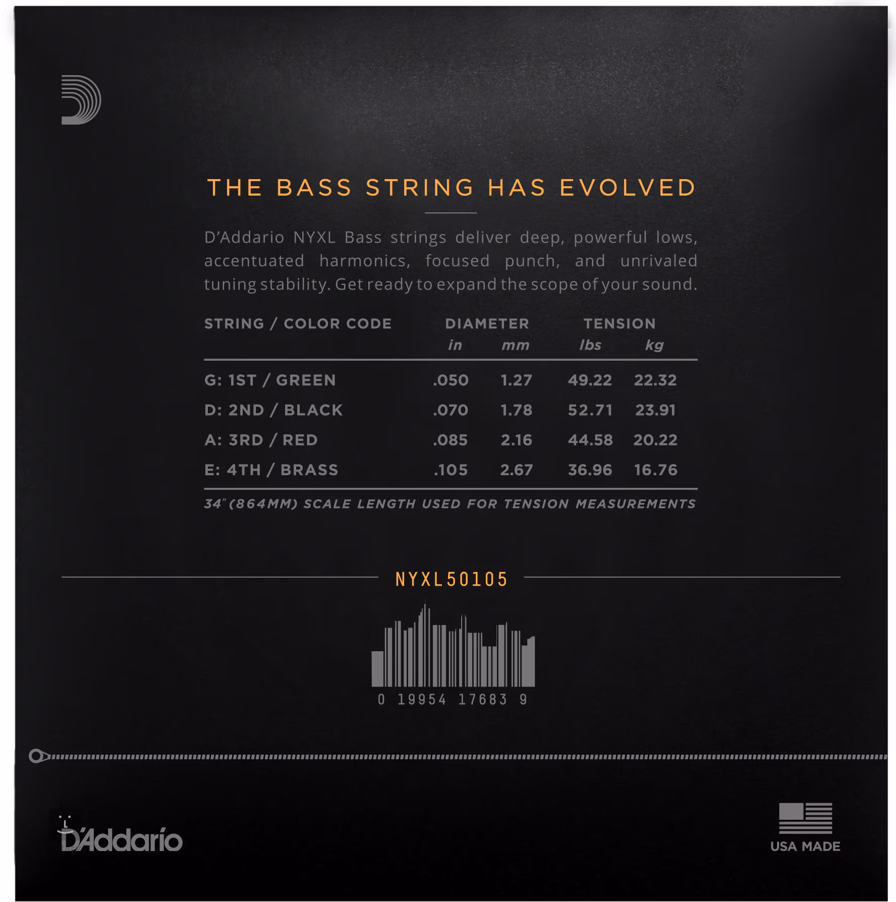 Prémiové struny pro elektrickou baskytaru D’addario NYXL jsou nadstandardně odolné a flexibilní, aby vás podržely při slapování, bendování i běžném hraní. Jejich jádro je vyrobeno ze speciální ocelové slitiny NY Steel, která je o 40 % odolnější než běžná ocel, takže se nemusíte obávat častého praskání. Vinutí z poniklované oceli je navíc navinuté speciální technologií Fusion Twist, díky níž je ladění o 131 % stabilnější než u běžných strun. Jedná se zkrátka o struny prémiové kvality, které potěší i ty nejnáročnější profíky.