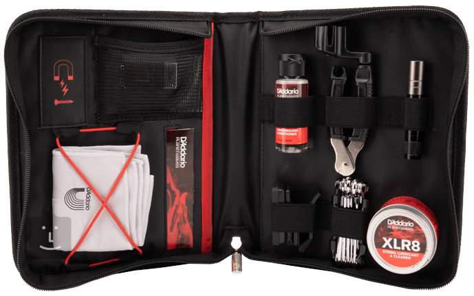 Sada Hurricane Kit v sobě obsahuje vše, co světoznámá kytaristka Nina Strauss používá k udržení svých kytar v dokonalé kondici. I vy tak teď můžete mít vše, co budete potřebovat k vyčištění, seřízení a naladění svého nástroje, pohodlně po ruce. V balení najdete kondicionér na hmatník, čistič na struny XLR8, leštidlo na pražce, multitool, klipovou ladičku, kleště na struny s navíječkou, 9V baterii, pravítko pro nastavení výšky strun, hadřík z mikrovláken a signature svítilnu Nity Strauss. To vše navíc v elegantním pouzdře.